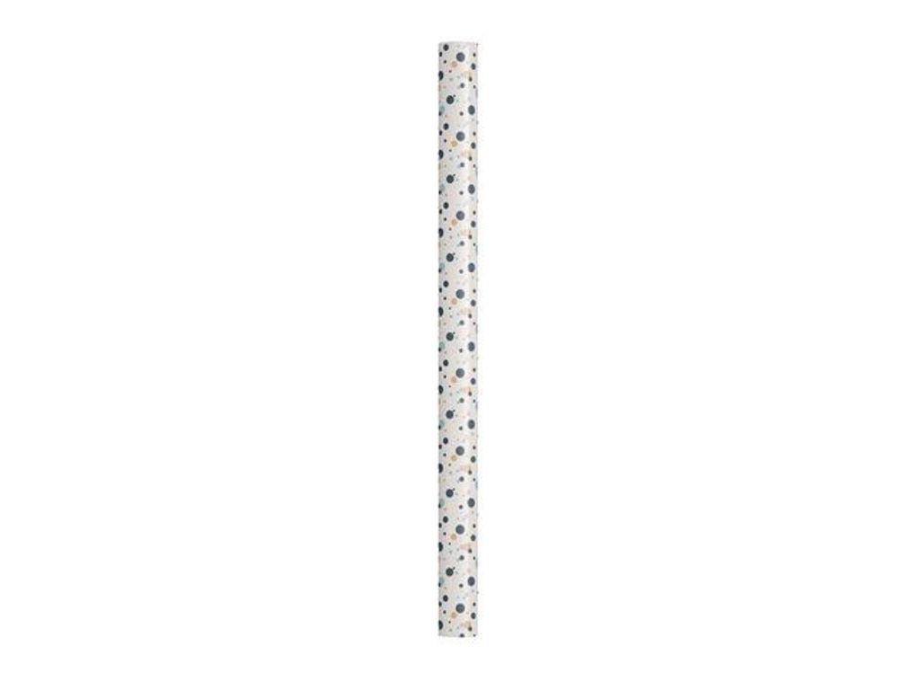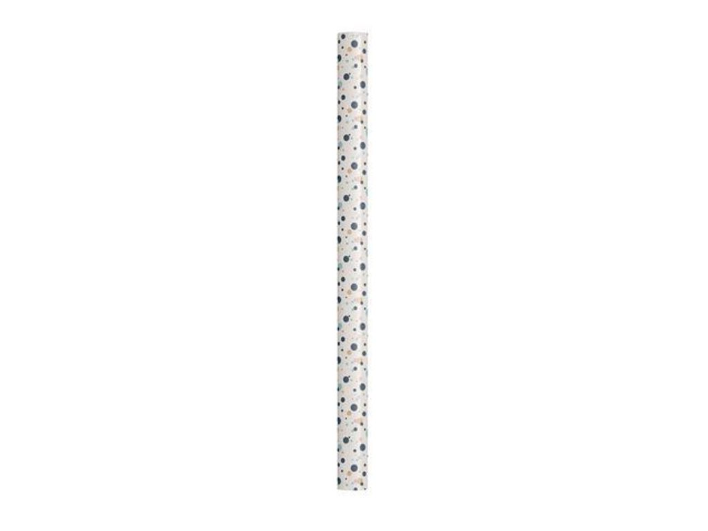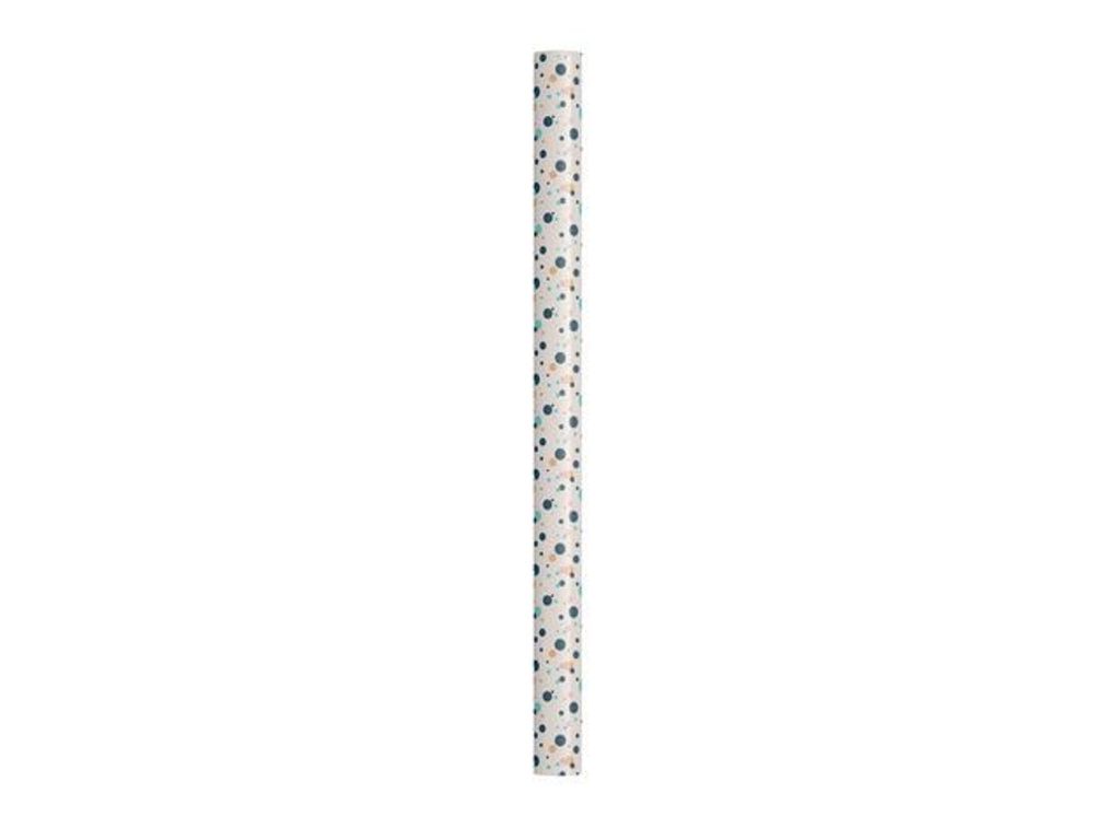 Beskrivning av Presentpapper 70cmx10m konsum. Konfetti Mönstrat presentpapper tillverkat i Sverige av FSC-märkt papper. Svensktillverkat och FSC-certifierat presentpapper med motiv Konfetti. - Mått: 70cm x 10m - FSC-mix