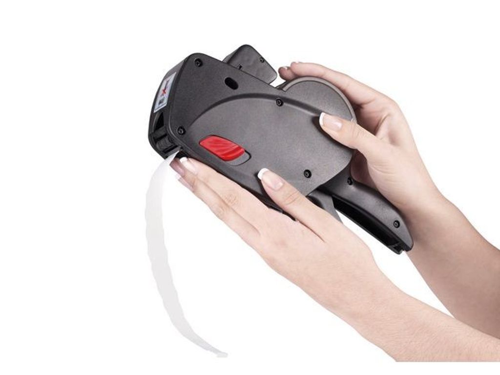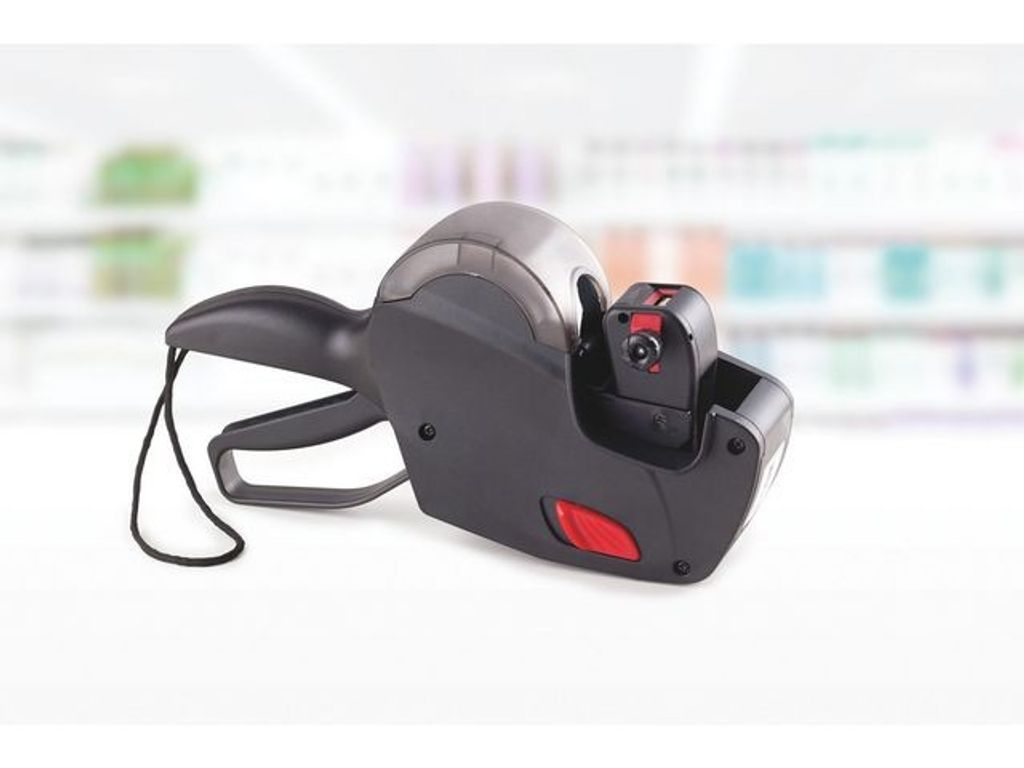 Prismärkare med 1 rad och 8 tecken för prisetiketter Prismärkare, Avery. Prismärkare med 1 rad och 8 tecken för prisetiketter (26 x 12 mm). Robust pistol för prismärkning direkt i butiken eller på lagret. Med Avery prismärkare och tillhörande prisetiketter kan du enkelt prismärka, datumstämpla och batchkoda ett brett utbud av produkter – snabbt och effektivt. På bara ett par minuter kan du ha en stor mängd försäljningsklara produkter på hyllorna. Prispistolen kan skriva max. 8 alfanumeriska tecken på 1 rad. Du kan skriva siffrorna 0-9 samt följande symboler: Kr, €, £, St, %, Kg, Art. Levereras inklusive 1 rulle vita permanenta prisetiketter (26 x 12 mm) och en svart bläckpatron. Se en videoguide för hur du byter etikettrulle och bläckpatron: www.avery.dk/videovejledning-prismaerkepistol