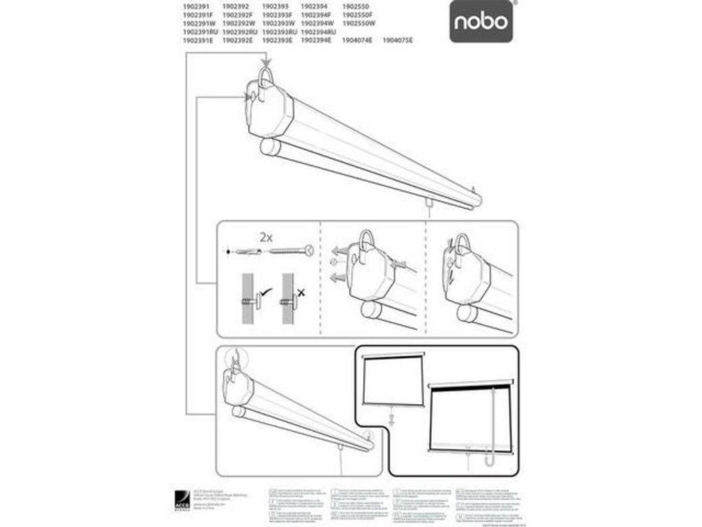 Duken kan praktiskt och enkelt dras in i höljet när den inte används. Nobos väggmonterade projektordukar har en klarvit matt yta med tydlig svart kant för att ge en skarp och detaljerad bild. De är flexibla och kan användas för digital projicering eller overheadprojicering och monteras på väggen eller i taket. - Format: 4:3 - Mått: 2400 x 1813 mm - Garanti: 1 år