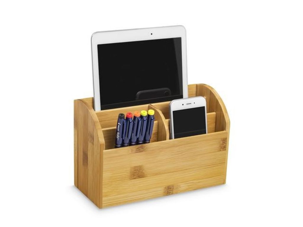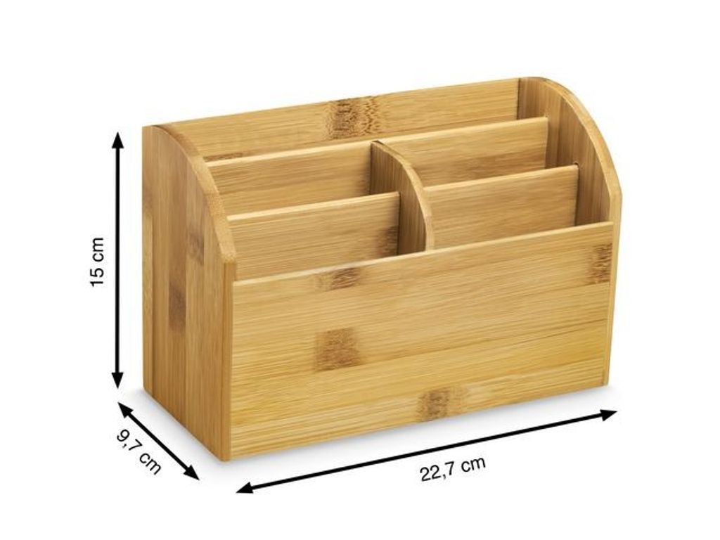 Praktisk ställ av bambu för alla dina kontorsmaterial, både för skrivbordet hemma eller på kontoret. Elegant Skandinavisk design ger en klassisk stilrent arbetsmiljö. Fem förvaringsfack för pennor, surfplatta, telefon och andra tillbehör. Skyddande lack gör dessutom prylstället vattenskyddat. Vänligen notera att naturliga material som bambu kan variera i färg. - Tillverkat helt utan skruv eller spik - Material: 100% Naturlig bambu - Vattenskyddande lack - Mått: 22,7x9,7x höjd 15 cm¿ - Vikt : 0,544 kg¿ - Återvinningsbar