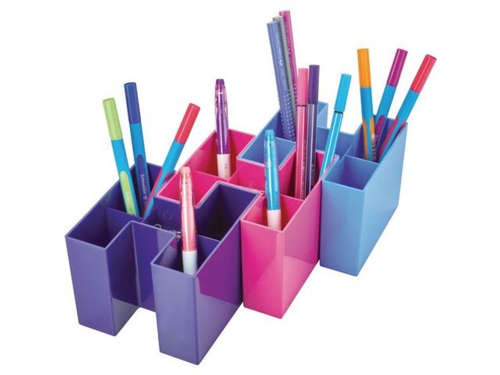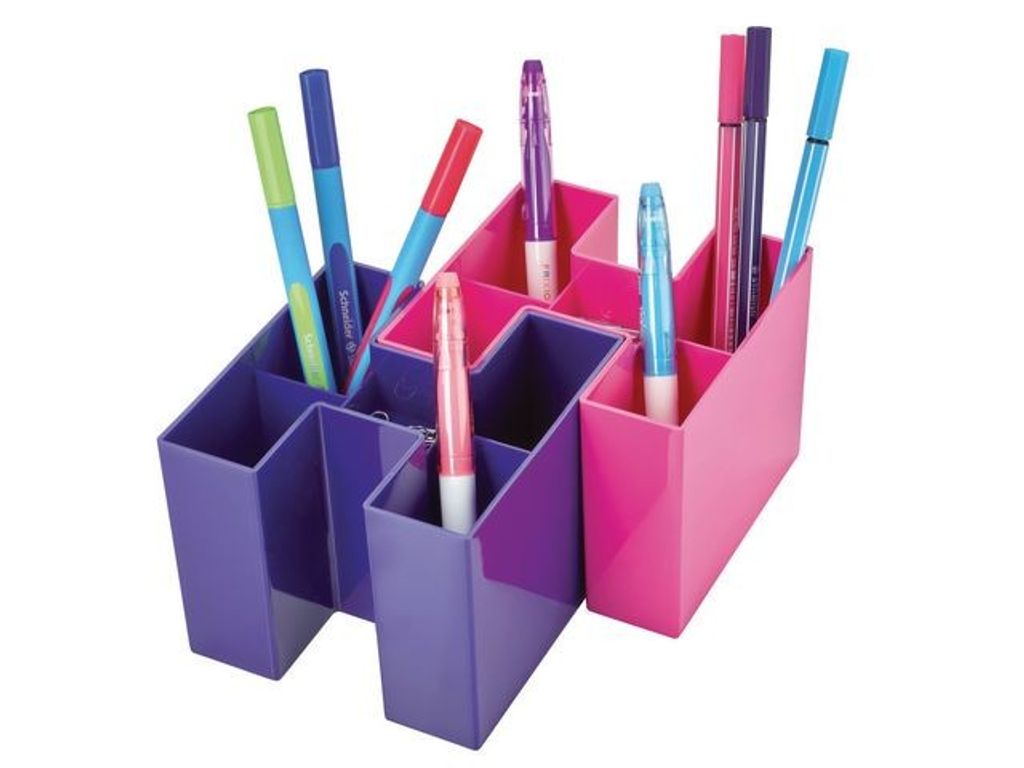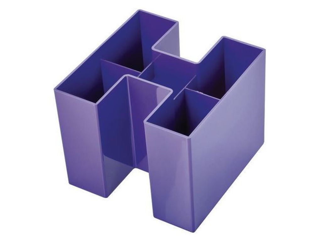 Exklusiv design möter funktion. Glansig färg. Högkvalitativt prylställ med 4 fack inklusive post-it och korthållare. De fyra facken i olika storlekar rymmer det du behöver på ett skrivbord, håller dem snygga och möjliggör snabb hantering. Kan kombineras och utvidgas individuellt. Robust, slitstark och stabil. - Halkfri på grund av gummimöbelskydd. Gjord i - Yttre mått (B x D x H): 125 x 125 x 100 mm - Material: Högkvalitativ polystyren - Färg: Lila