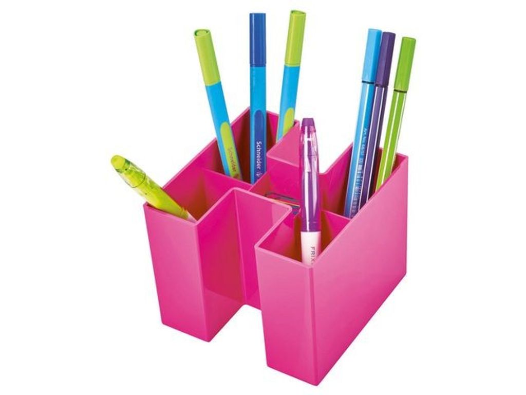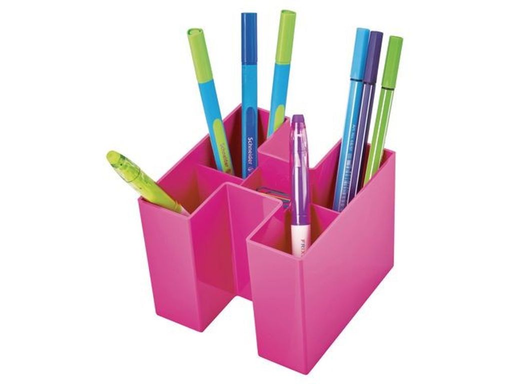 Exklusiv design möter funktion. Glansig färg. Högkvalitativt prylställ med 4 fack inklusive post-it och korthållare. De fyra facken i olika storlekar rymmer det du behöver på ett skrivbord, håller dem snygga och möjliggör snabb hantering. Kan kombineras och utvidgas individuellt. Robust, slitstark och stabil. - Halkfri på grund av gummimöbelskydd. Gjord i - Yttre mått (B x D x H): 125 x 125 x 100 mm - Material: Högkvalitativ polystyren - Färg: Rosa
