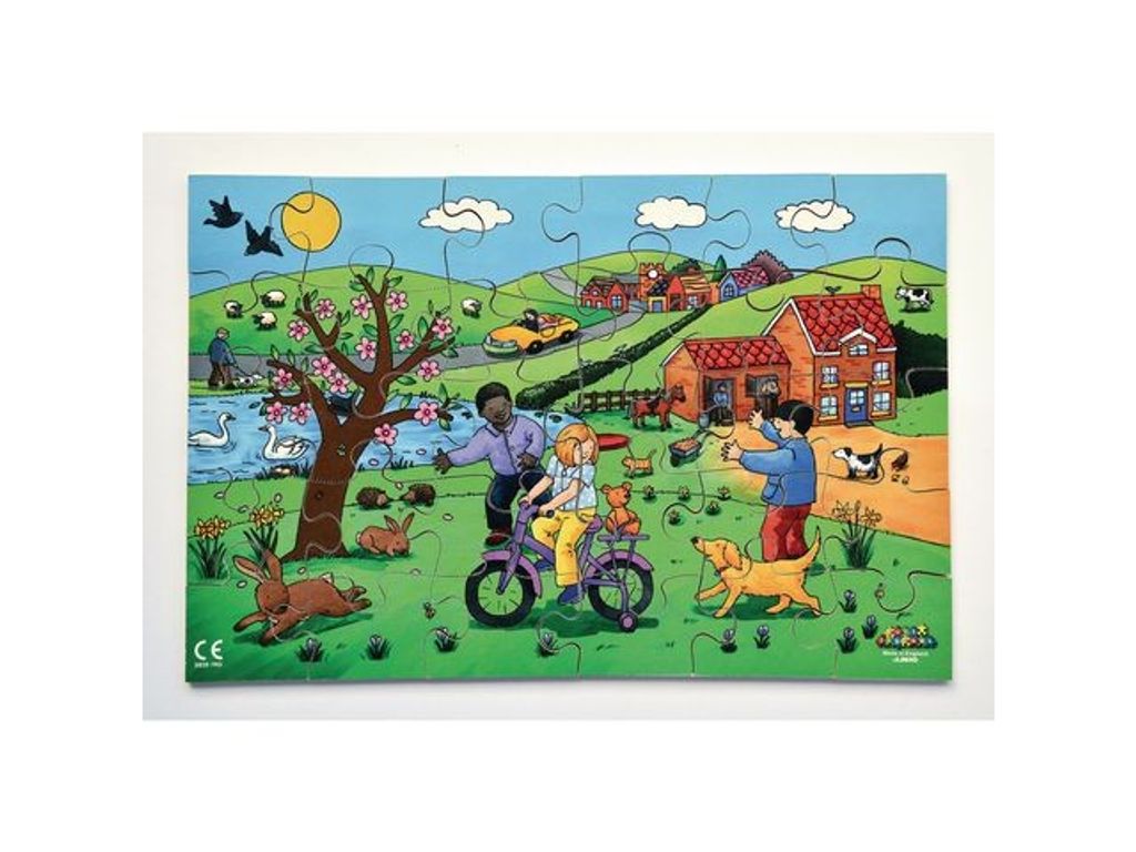 Fyra stycken olika pussel som visar vad som sker under de olika årstiderna på gården. - Antal pussel/fp: 4 - 30 bitar totalt - FSC-märkt, licensnummer: FSC-C177741 Varning. Lämpar sig inte för barn under 3 år