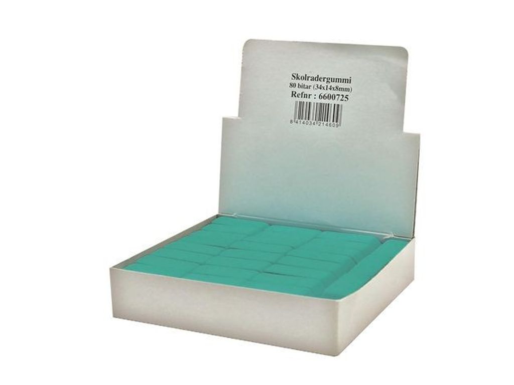 Kvalitativt radergummi som räddar när det behövs. Det här högkvalitativa suddgummit från Faber-Castell garanterar optimala resultat. Använd det här klassiska gröna suddgummit från Faber-Castell för att enkelt sudda bort svart blyerts. PVC-fritt. - PVC-fri, Ftalat-fri och Latex-fri - Material: Artificiellt gummi - Mått: 40 x 15 x 8 mm - Färg: Grön