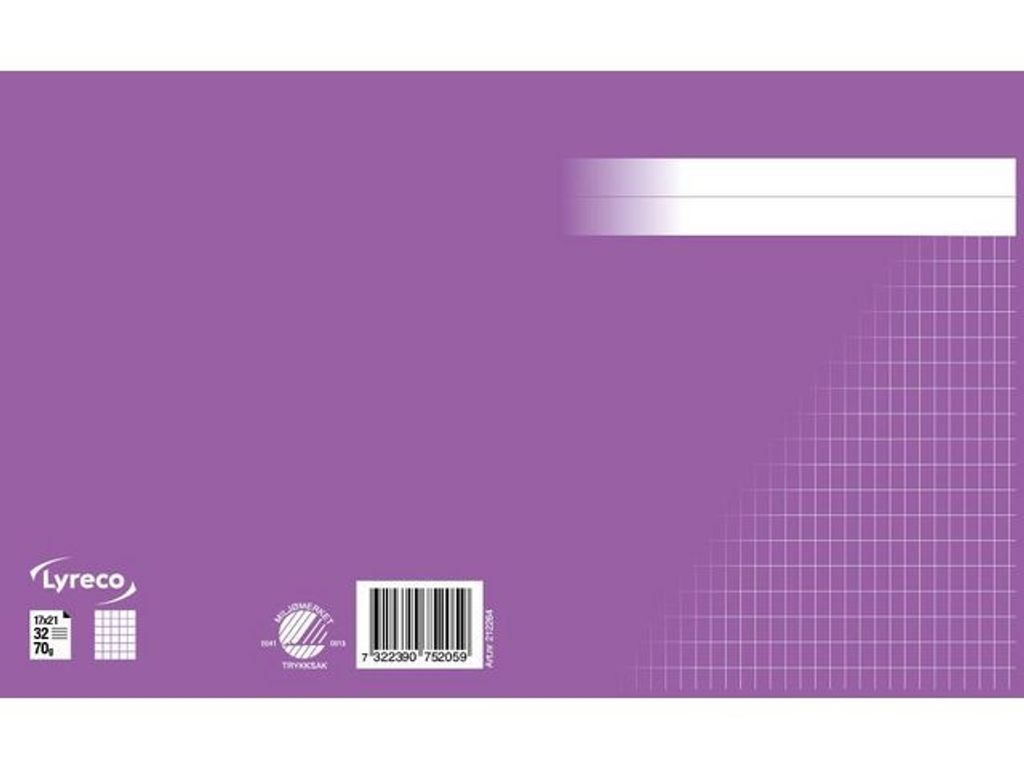 En stilren serie skriv- och räknehäften för alla åldrar. Linjerade, rutade och olinjerade varianter i olika storlekar och de härliga färger hjälper dig att skilja dem åt. Ett svanenmärkt, rutat, räknehäfte i formatet 17x21cm. Rutorna är 5x8 mm. - Format: 17x21cm - Ruta: 5x8mm - Gramvikt: 70g - Antal blad: 32 - Färg: Lila - Svanen: Licensnummer 20410013 Svanen: Licensnummer 20410013
