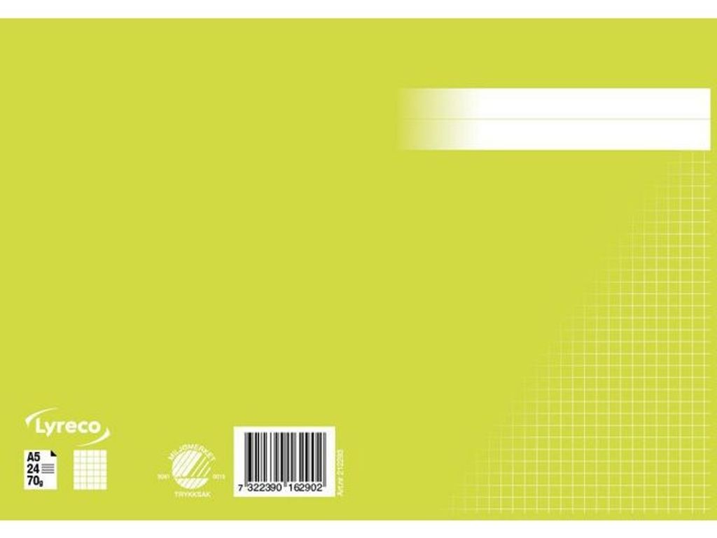 En stilren serie skriv- och räknehäften för alla åldrar. Linjerade, rutade och olinjerade varianter i olika storlekar och de härliga färger hjälper dig att skilja dem åt. Ett svanenmärkt, rutat, räknehäfte i A5 format. Rutorna är 5x5 mm. - Format: A5 - Ruta: 5x5mm - Gramvikt: 70g - Antal blad: 24 - Färg: Ljusgrön - Svanen: Licensnummer 20410013 Svanen: Licensnummer 20410013
