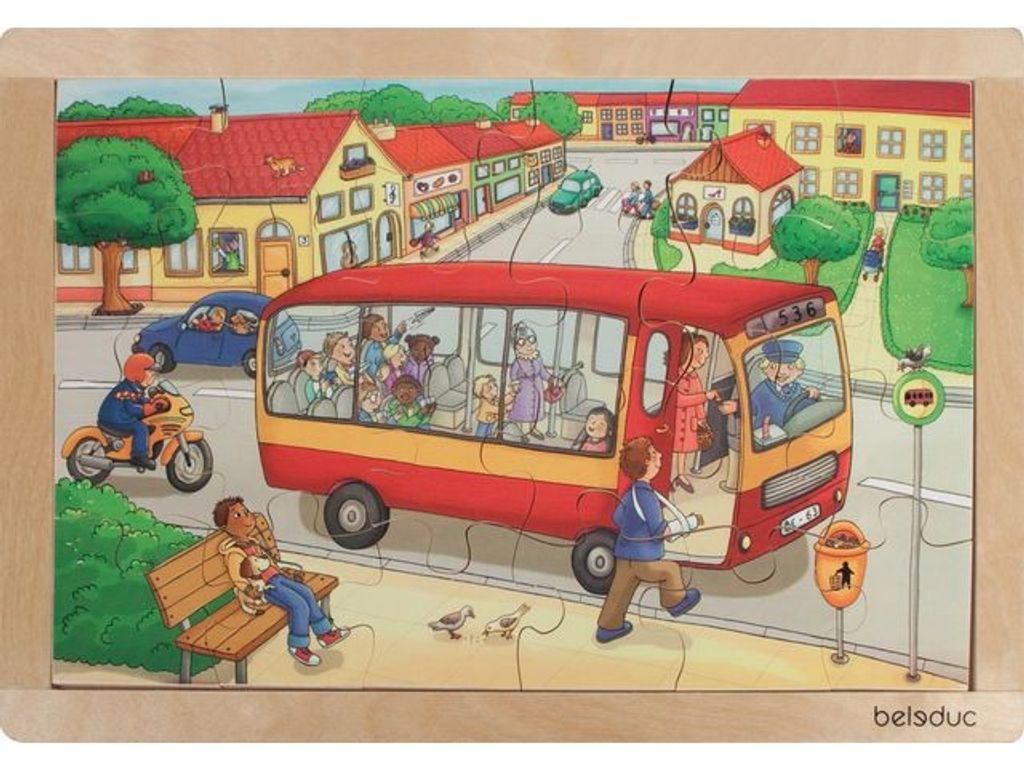 Barnen kommer att ha skoj med att upptäcka skogens mystiska värld med de här inramade pusslen som har färgglada bitar. Gör de här inramade pusslen till en klassrumsaktivitet eller ha dem i leksakslådan i hemmet för timtal av kreativt skoj. Små barn utvecklar finmotoriska färdigheter medan de lägger pusselbitarna för att upptäcka ett stadstema som visar en färgglad buss och olika aktiviteter i samhället. Pusslen främjar barnens fantasi medan de upptäcker den färgglada världen omkring sig. - Inramat pussel - Hjälper små barn att utforska stadslivet - Stadstema - Antal delar: 24 - Material: Screentryckt plywood - Rammått: 280 x 400 mm
