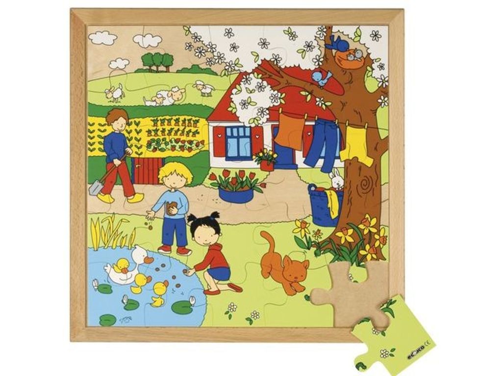 Det här unika, inramade pusslet är inte bara en rolig och interaktiv leksak för små barn, utan det är även ett enastående hjälpmedel i undervisningen. De här inramade pusslen i screentryckt plywood är ett innovativt hjälpmedel i undervisningen för små barn. Barnen har inte bara kul när de spelar, utan de lär sig även genom lek. Det här pusslet är baserat på hur roligt man kan ha runt huset och har färgglada bitar som avbildar många utomhusaktiviteter, som exempelvis att mata ankorna. De här pusslen hjälper barnet att utveckla finmotoriska färdigheter och främjar kreativ fantasi genom lek. Pusselbitarna är det perfekta tillskottet till klassrummet och lekrummet i hemmet. - Antal delar: 25 - Material: Screentryckt plywood - Rammått: 40x 40 cm Varning. Lämpar sig inte för barn under 3 år