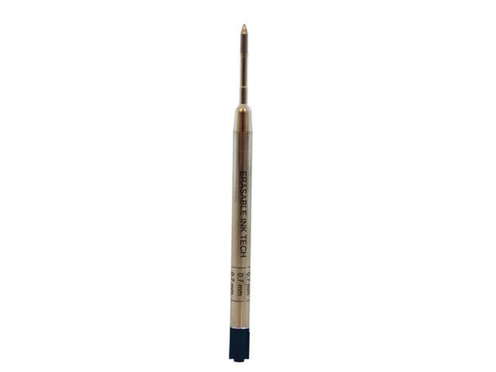 Refillpatroner till Ballograf pennan Rondo Erase med raderbart bläck. Skriv med stil, och sudda om det blir fel. Denna refillpatron passar till Ballograf Rondo Erase som är vår fina kulspetspenna med raderbart bläck. Din bästa pennvän i skolan, på jobbet och på fritiden – inte minst om du gillar att lösa korsord. Spets: Medium Bläckfärg: Samma som patronens topp: blå, svart, rosa eller grön Bläcket i Rondo Erase är värmekänsligt, det försvinner när det värms upp. När du suddar med pennans suddgummi bildas friktion som värmer upp pappret och bläcket, och bläcket blir osynligt. Det du skrivit kan dock komma tillbaka om pappret kyls ner, till exempel om du lägger det i frysen. - Medium spets 0,7mm - Färgen på proppen i änden på patronen indikerar bläckets färg - Bläcket är raderbart genom friktion - Bläckfärg: Samma som patronens topp: blå, svart, rosa eller grön