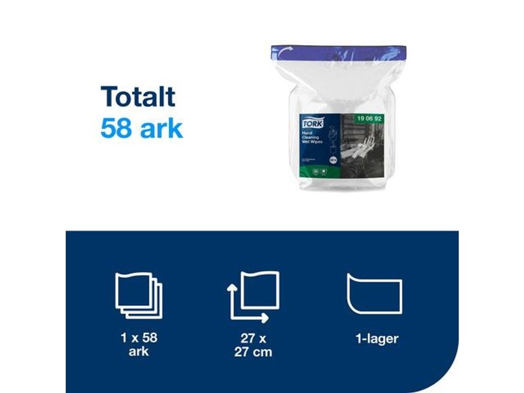 Kvalitet på proffsnivå för effektiv handtvätt. Tork Våtdukar för Handrengöring gör det bekvämt och effektivt att tvätta händerna utan tillgång till vatten. Produkten gör påfyllning lätt och smidig. - Kvalitet på proffsnivå för effektiv handtvätt - Tar bort olja, smuts, målarfärg och fett effektivt och ger goda rengöringsresultat - Oparfymerade och milda mot huden