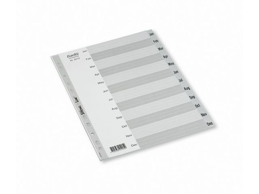 Beskrivning av Register BANTEX A4 PP Jan-dec Pärmregister i slitstark PP-folie med tryckt framsida i kartong med hålförstärkning. Multihålade.