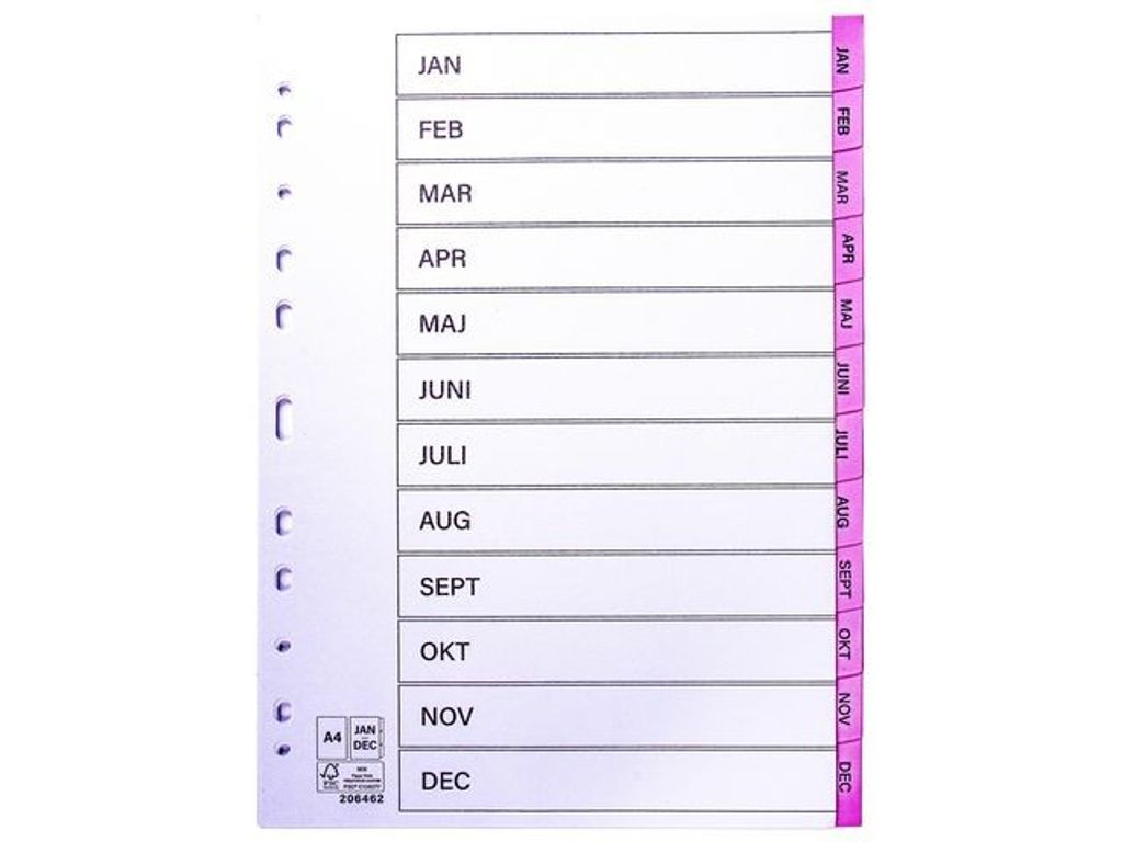 Pappersregister med plastflikar som ger dig möjlighet att skapa ett anpassat indexeringssystem för årets alla månader. Avdelarna passar för yrkesmässig eller personlig användning och har en förtryckt design som gör det enkelt att lägga till etiketter och beskrivningar som antingen kan skrivas för hand eller tryckas direkt på avdelarna. Registren är universalhålade att passa de flesta mappar och pärmar så att du snabbt kan identifiera och hämta obligatorisk information utan krångel. Pappersregistret har även ett försättsblad. - Register JAN-DEC - Vikt: 110g - Mått: A4 - Färg flikar: Rosa - Antal: 10 - Universalstansade - Klor- och syrafri