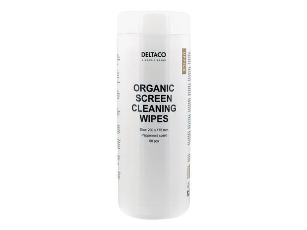Organiska Skärmrengöringsdukar, 200x175mm, 1 förpackning 60 servetter, pepparmyntsdoft, vit. Organiskt nedbrytbara rengörsingsdukar med en pepparmyntsdoft som kan användas på olika skärmar som finns på ett kontor. Stå ut ur mängden genom att kunna erbjuda rengöringsdukar som inte innehåller SLES, Parabener, Fosfater eller Petroleumderivat. - Biologiskt nedbrytbar - Utan SLES, Parabener, Fosfater och Petroleumderivat - 200x175mm rengöringsdukar - Förvaras utom räckhåll för barn.