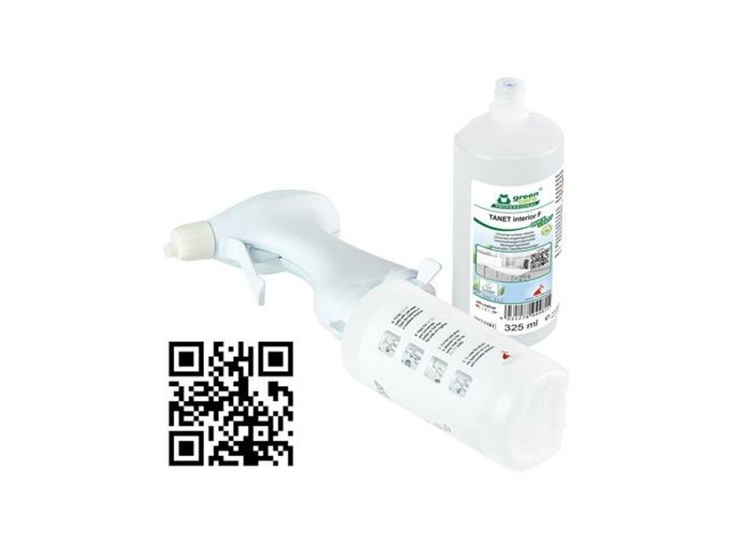 Den skummande TANET interior F Quick & Easy passar perfekt för rengöring av alla vattentåliga ytor. Den materialvänliga universella ytrengöringen övertygar med enastående rengöringsprestanda. Lämnar inga rester och passar även perfekt till fönsterputsning. - pH-värde: 7.0 (koncentrat), 8 (brukslösning) - Produkten är färg- och parfymfri - Dosering: Förbestämd, ej justerbar. Använd två tryck/duschar per kvadratmeter för att uppnå bästa resultat. - Utseende: Blå vätska