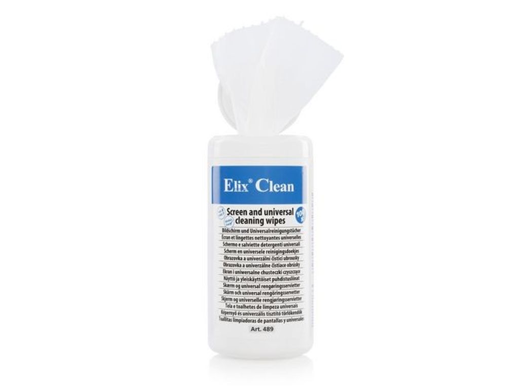 Beskrivning av Rengöringsduk ELIX screen 100/fp Förfuktade rengöringsservetter för rengöring av datorhöljen, tangentbord, skrivbord etc. Servetter levereras i en återförslutningsbar förpackning. Refill finns. - Ytservetter - 100 våtservetter