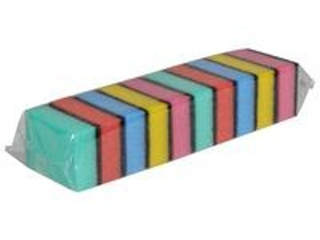 Beskrivning av Rengöringssvamp 9x6cm 10/fp flerfärgad Svamp för allmän grov rengöring. Små skursvampar i sorterade färger med grönt nylon. Används för rengöring, till exempel i kök för grytor, grillar, stekpannor.
