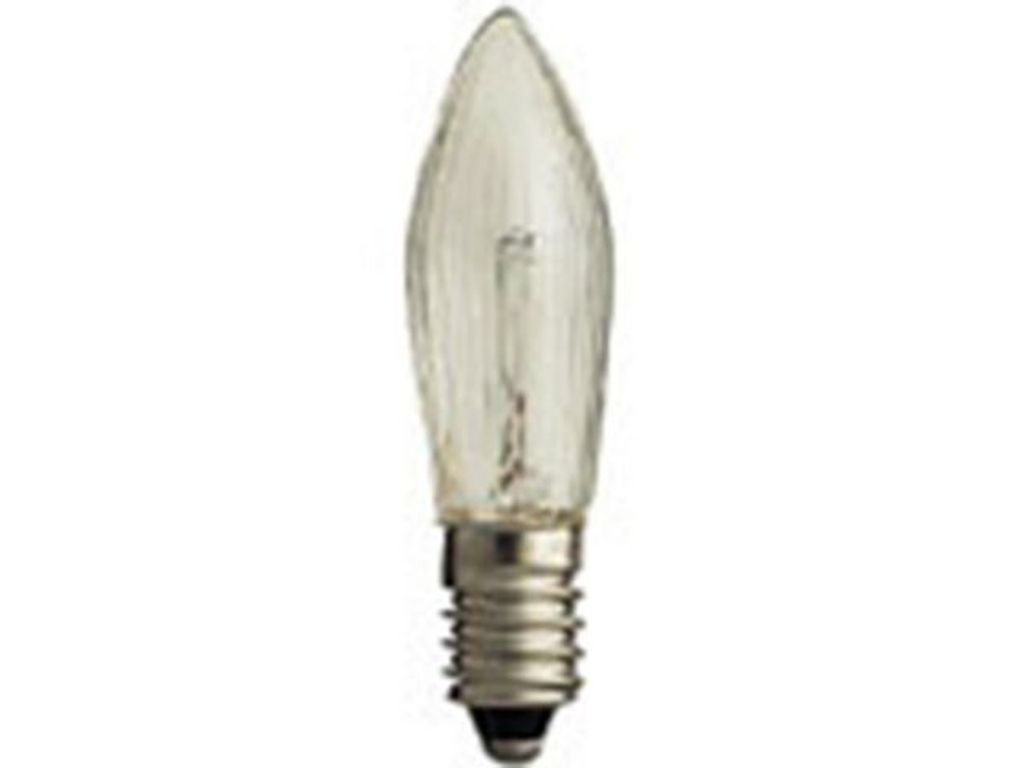 Beskrivning av Reservlampa ljusstake 3-arm 3/fp Reservlampor till 3-armad ljusstake. Passar även till ljusstakar som har transformator. E10, 24V, 1,8W, klar, 3/förp. - Ljusfärg: Varmvit - Sockel: E10