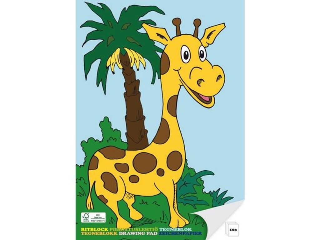 Fint ritblock med motiv av en giraff på framsidan. Smidigt ritblock i A5 format som är lätt att ta med. Tillverkat i FSC papper för att säkra råvara från hållbart skogsbruk. Vitt papper av fin kvalitet och rejäl kartongbaksida. - FSC-certifierat papper - Format: A5 - Antal blad: 100