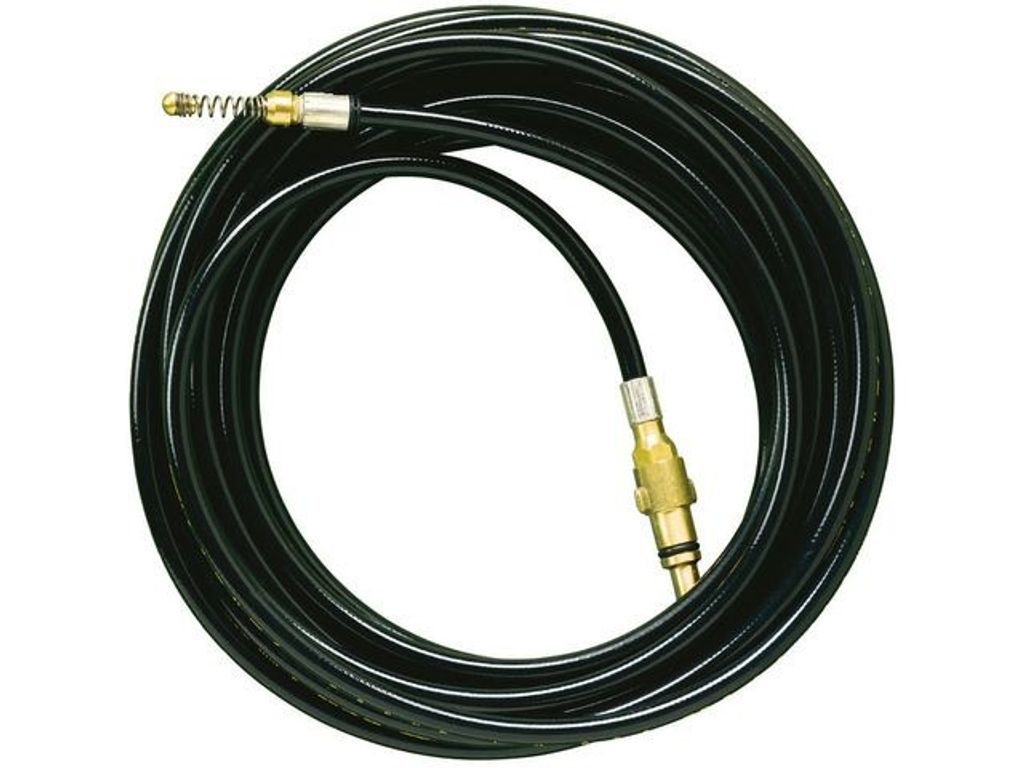 Denna 15 meter långa slang arbetar sig igenom igensatta avlopp. Spiralmunstycke hittar vägen själv, även vid rörböjar och vattenlås. Slangen kan även användas till rengöring av andra rör som till exempel stuprör. Passar till Nilfisk hNilfisks konsumentmaskiner men inte premiummaskiner.