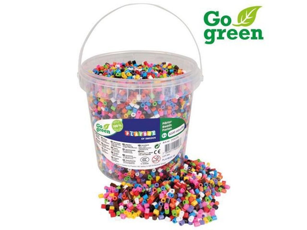 Mix av pärlor i fina färger förvarade i en praktisk hink med lock för praktisk förvaring. Lägg pärlor i olika mönster på pärlplattor, trä på tråd eller använd till dekoration av olika slag. Pärlorna är gjorda i bioplast gjort på sockerrör, vilket innebär att den inte ökar CO2 påverkan och är dessutom 100% återvinningsbara. Pärlorna kan limmas eller strykas samman. - Antal: 5000/FP - Höjd: 5 mm - Hål-diameter: 2,5 mm - Färger: Vit, gul, orange, röd, lila, rosa, blå, grön, brun och svart - Tillverkat av: Bioplast gjort på sockerrör