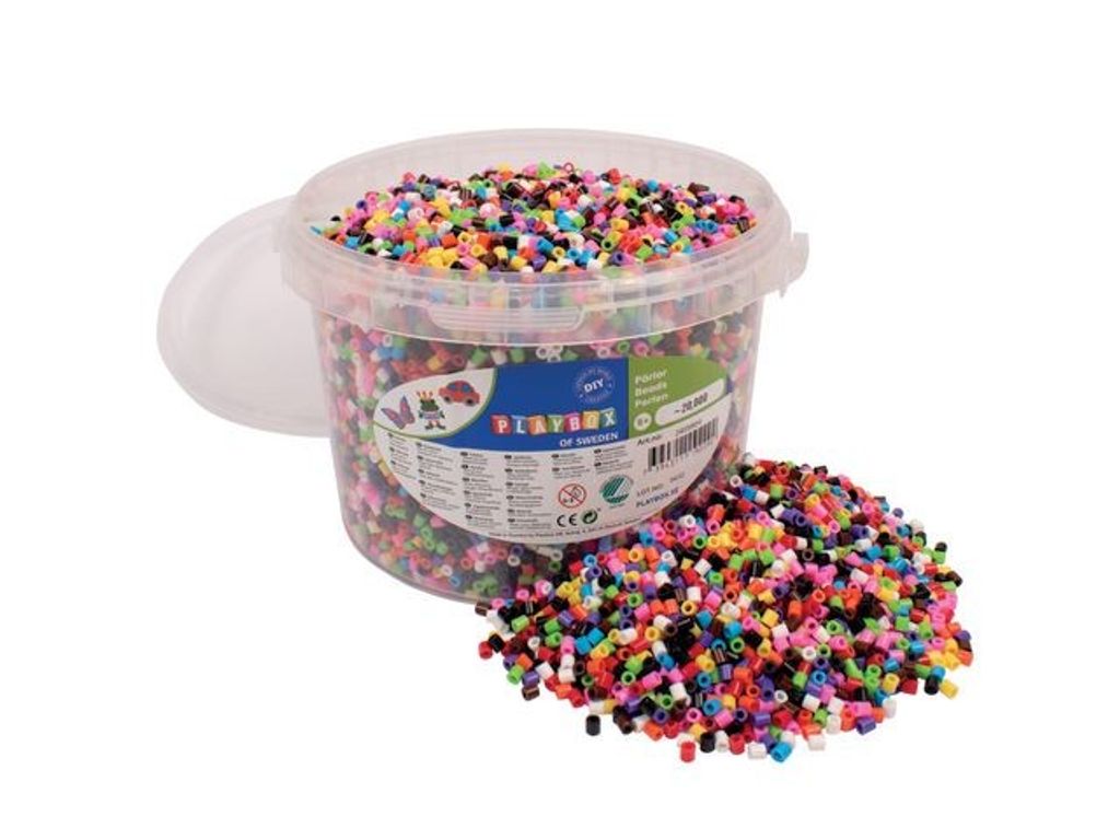 Svanenmärkta rörpärlor till pärlplattor i en klassisk färgmix. 20.000 stycken rörpärlor i en praktisk hink som förvaring. Lägg pärlor på pärlplatta i olika mönster eller för fritt skapande. Kan också användas till pyssel och dekoration. Pärlorna kan limmas eller strykas samman. - Höjd: 5 mm - Ø: 5 mm - Hål-Ø: 2,5 mm - Färger: Vit, gul, orange, röd, lila, rosa, blå, grön, brun och svart - Material: LDPE - Svanenmärkt: licensnummer 3095 0007