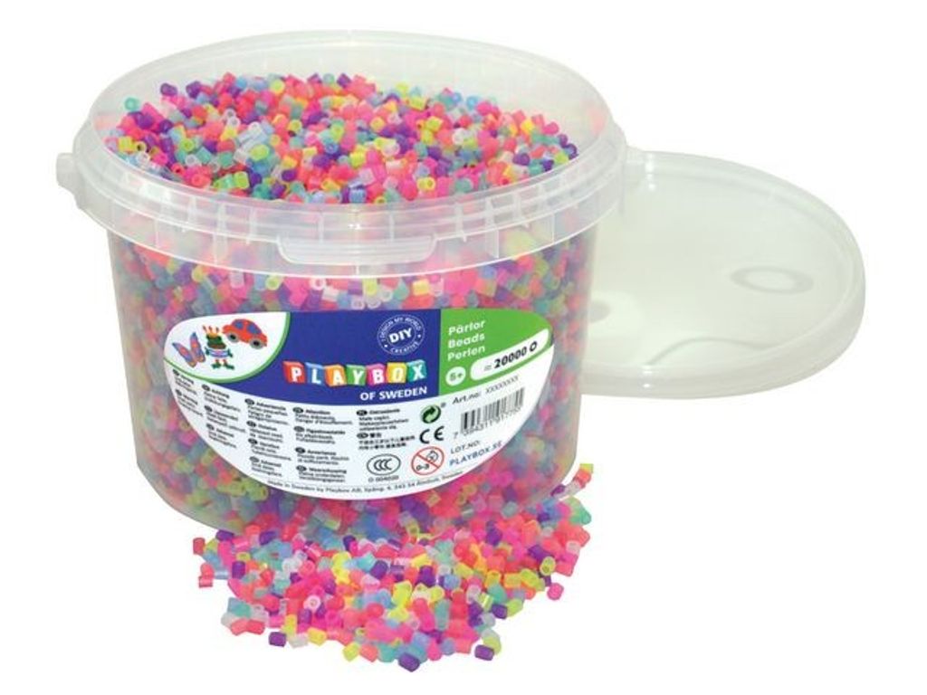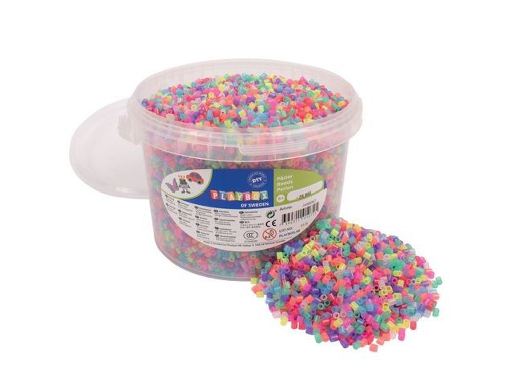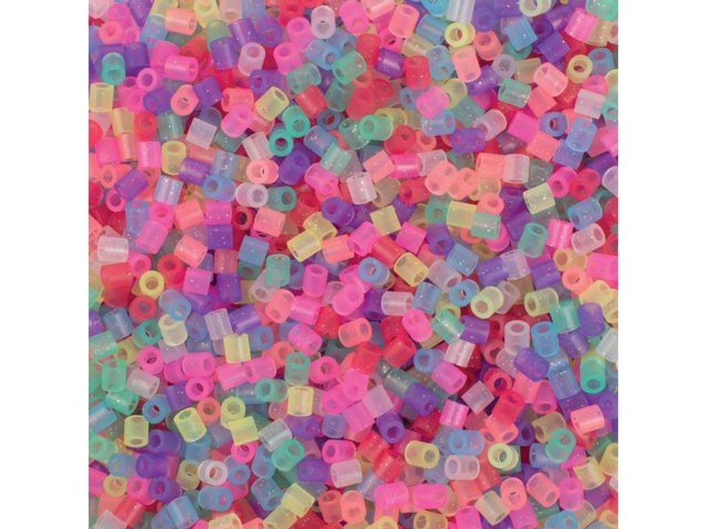 Mix av glittriga pärlor i härliga färger förvarade i en praktisk burk. Lägg rörpärlor i olika mönster på pärlplattor eller skapa fritt. Kan strykas ihop. Kan också användas till pyssel och dekoration. - Höjd: 5mm - Ø: 5mm - Hål-Ø: 2,5mm - Material: LDPE - Färg: blandade - Antal: ca 20 000st