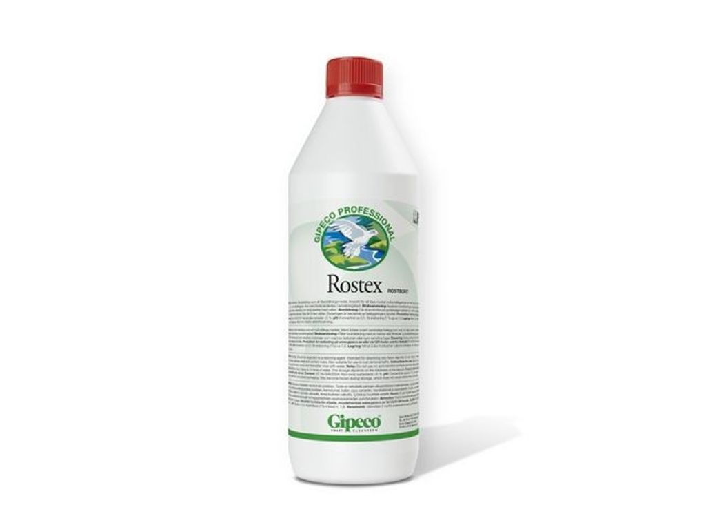 Avsedd för att lösa mycket svåra beläggningar av rost, ärg, cement, murbruk och betongrester på stål, rostfritt och sanitetsporslin. Rostex är självverkande och löser på ett förnämligt sätt beläggningar av rost, ärg, cement, murbruk och betongrester. Rostex ska betraktas som ett återställningsmedel. Rostex kan med fördel användas i avrostningsbad. - pH-värde: 7 - Utseende: Gulaktig vätska