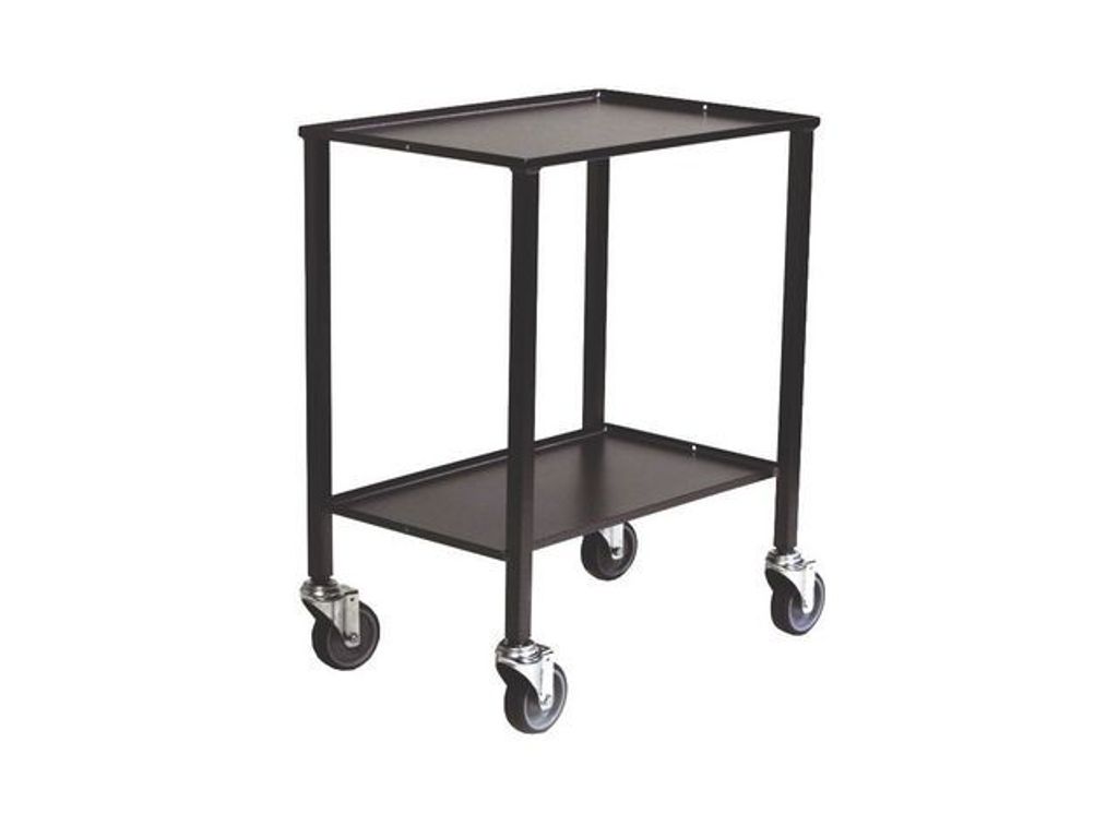 Smidigt rullbord i 2 plan. Hyllplanen kan monteras med kant upp eller ner efter eget önskemål. Anpassat för backar 600x400mm. Helsvetsad. Levereras som ett platt paket, oomonterat. - Belastning: 150kg - Storlek: 670 x 415 x 760mm (LxBxH) - Avstånd mellan hyllplan: 480mm - Hjultyp: 4 länkhjul, 100mm - Bromsade hjul: Nej - Vagnens vikt: 15,5kg
