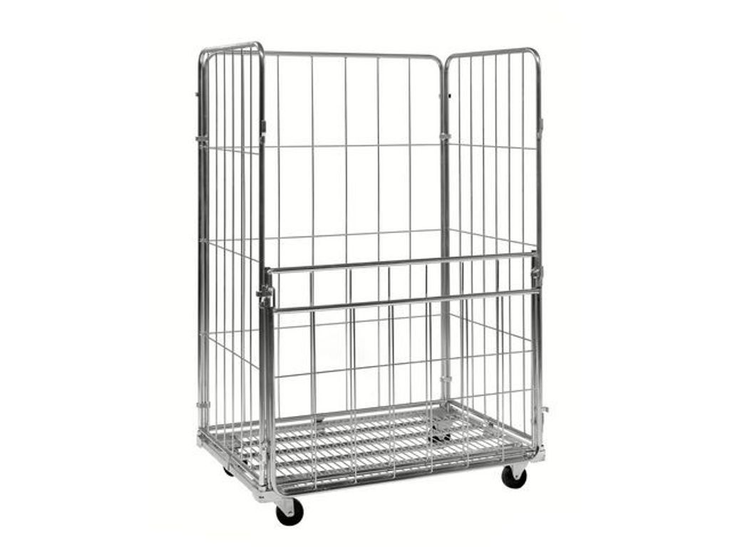 Rullcontainer med 4 sidor, för många användningsområden. Som tillbehör finns bl.a. säkerhetsband som förhindar din last att falla ur. Enkel montering utan verktyg. Levereras omonterad. Elförzinkad. - Belastning 400kg - Storlek: 720 x 800 x1800mm (LxBxH) - Inkl. 1 halvhängd grind på 72 mm sidan - Invändigt mått: 660 x800 x 1640mm - Hjultyp: 2 fasta och 2 länkhjul 100mm - Bromsade hjul: Nej - Vagnens vikt: 47kg - Maska: 105x395mm