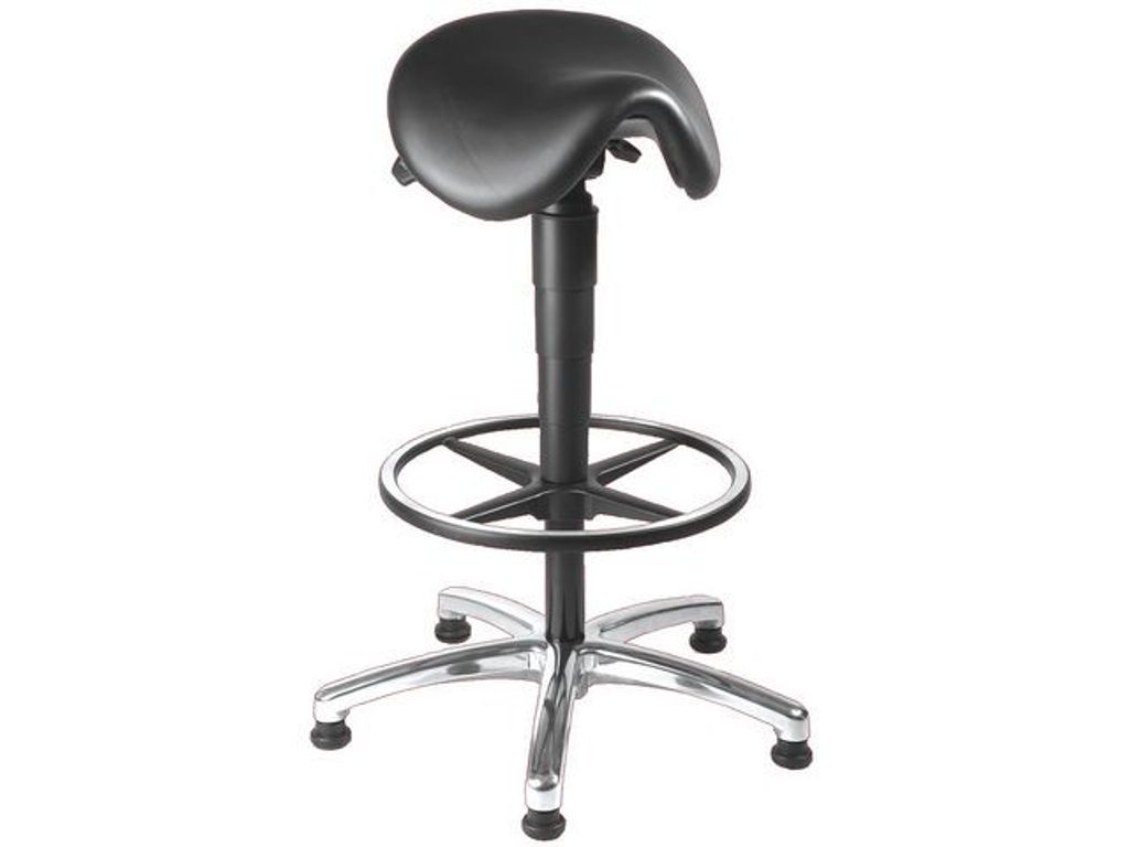 Topstar® sadelstol är justerbar och bekväm att sitta i och den är designad med hänsyn till detaljer och kan användas på kontor och skönhetssalonger. Topstar® sadelstol har en justerbar sits och en fotring som kan ställas in på önskad höjd för komfort och tillräckligt benstöd. Den har även en förkromad, stjärnformad fot. Dessutom är sadelstolens sits tillverkad av mjukt och högkvalitativt läder med tillräcklig vaddering för att minska onödig belastning. - Inbyggd gaslyftmekanism - Levereras med förkromad, stjärnformad fot - Hjul ingår ej - Med en justerbar fotring - Sitsens material: Läder - Hjul säljs ej till denna stol - Färg: Svart - Vikt: 11,6 kg - Justerbar sittshöjd: 59-84 cm