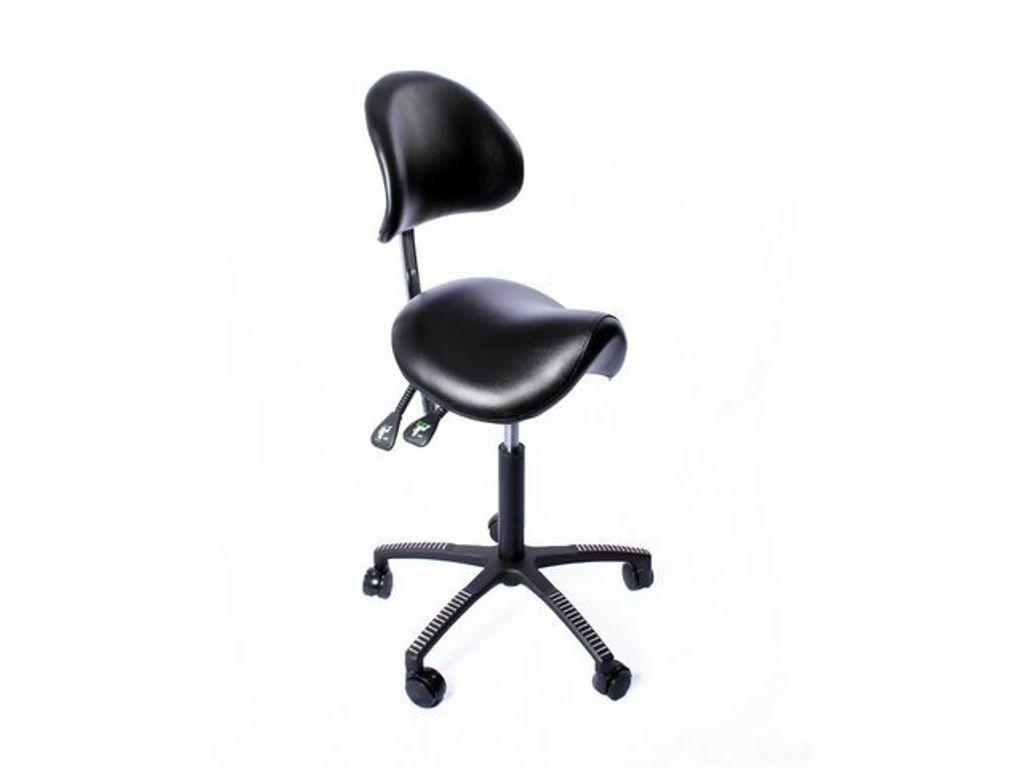 Denna stol är ett mycket bra alternativ när du behöver en sadelstol som ger en bra hållning. Den bekväma stoppningen och justeringen av höjd samt lutning på det steglösa sätet gör att alla kan ha en ergonomisk arbetsposition. Enligt flera användare har Lenni-stolen marknadens bästa sadeldel. Med höjd- och lutningsjustering av ryggstödet stödjer du bekvämt nedre ryggen. Stolens ryggstöd kan frigöras för rörelse, så det kan även användas som ett stretchstöd. Stolens mångsidiga justeringar och eleganta finish garanterar rätt sittposition och ett bra utseende utan att kompromissa med kvaliteten. Lenni är lämplig för användare i alla storlekar. Stolen kan också beställas med en längre och kortare gasfjäder. Valfri fotstödring. - Klädsel svart fauxläder - Sitthöjd 57-77 cm - Gitterdiameter 600 mm - Garanti 2 år