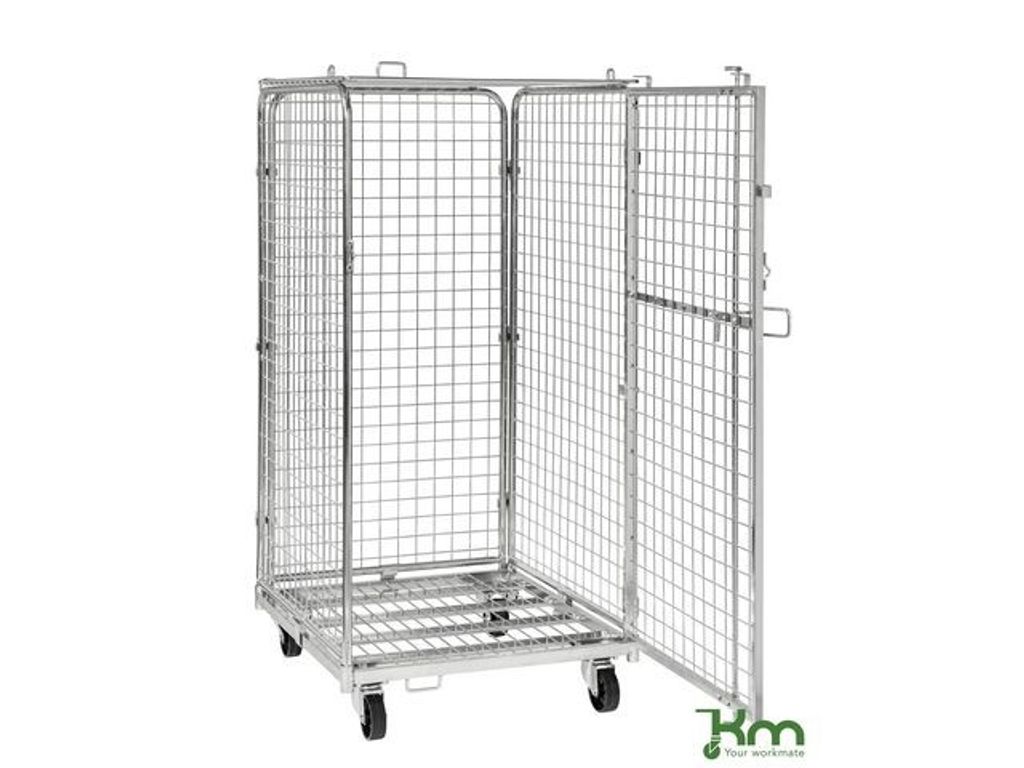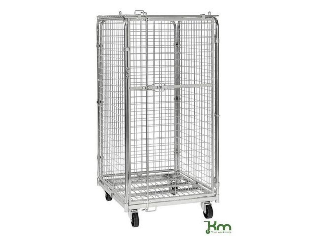 Säkerhetscontainer med tak som går att låsa med ett hänglås. Säkerhetscontainer som går att låsa med ett enkelt hänglås, finns i 4 modeller. Enkel montering utan verktyg. - Belastning 400kg - Storlek: 795 x 715 x 1505mm - Färg: Elförzinkad - Vikt: 51kg - Bromsade hjul: Nej - Hjul: 2 fasta och 2 länkhjul, 100mm