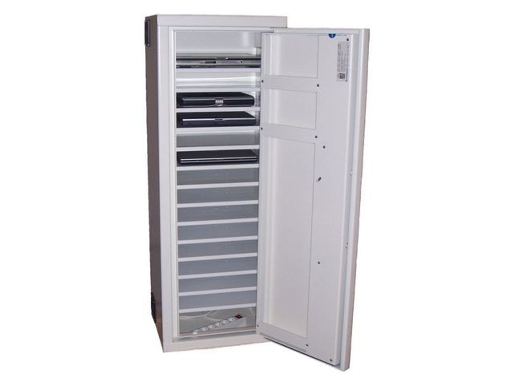 Säkerhetsskåp för förvaring av bärbara datorer med bästa skydd mot stöld och skadegörelse. Inbrottsklassat enligt SS3492. Självventilerande Uttagslist för möjlighet till laddning av datorerna i skåpet. Rymmer 14 bärbara datorer. 2 nycklar medföljer. Utvändigt mått: 55 x 150 x 48 cm (BxHxD). Fackets mått: 42,5 x 6,5 x 40 cm (BxHxD). Vikt: 215 kg. Frakt tillkommer. Leveranstid ca 2 veckor. Vid beställning kontakta kundtjänst.