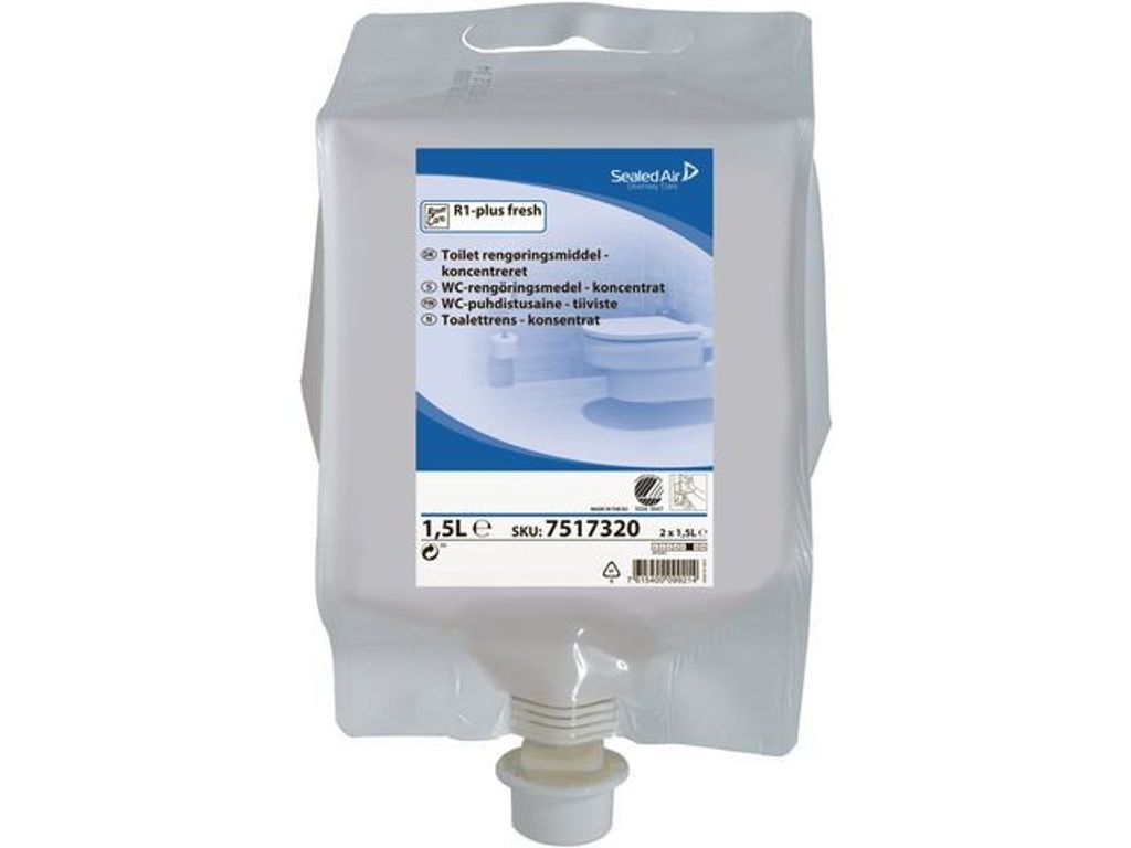 Roomcare R1 plus fresh är ett alkaliskt sanitets- och WC-rent i koncentrat för effektiv rengöring. Alkaliskt WC-rent i koncentrat. Effektiv formulering som gör rent och förhindrar uppbyggnad av kalkavlagringar. Används endast genom Diverseys Divermitesystem. Alkaliskt medel som rengör och avfettar. Effektiv för daglig rengöring och motverkar uppbyggnad av kalkavlagringar vid daglig användning. Enkel och rätt spädning med Divermite-systemet. Alkaliskt WC-rent i koncentrat Förhindrar uppbyggnad av kalkavlagringar Enkel spädning emd Divermite-systemet