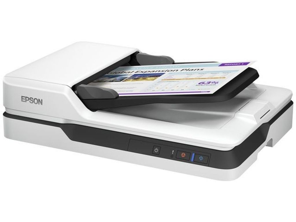 Den här smidiga och kompakta skannern från Epson är snabb och kraftfull, vilket gör den perfekt för alla hem och kontor. Epsons flatbäddsskanner är en av de minsta i sin klass och kan skanna upp till 25 sidor per minut, tack vare den automatiska dokumentmataren med 50 sidors kapacitet. Bilderna bearbetas snabbt via USB 3.0-anslutning. Den har smarta skanningsalternativ, till exempel beskärning, snedställning och bildkorrigering, och kan hantera långa dokument på mer än 3 meter. Du kan också skanna mer känsliga dokument, till exempel inbundna filer, dokument och böcker med en upplösning på 300 dpi. - Flatbäddsskanner - Automatisk arkmatare för 50 ark - USB 3.0 - LCD-skärm, 5 rader - Skannar upp till 25 sidor per minut - Mått: 451 x 315 x 120 mm