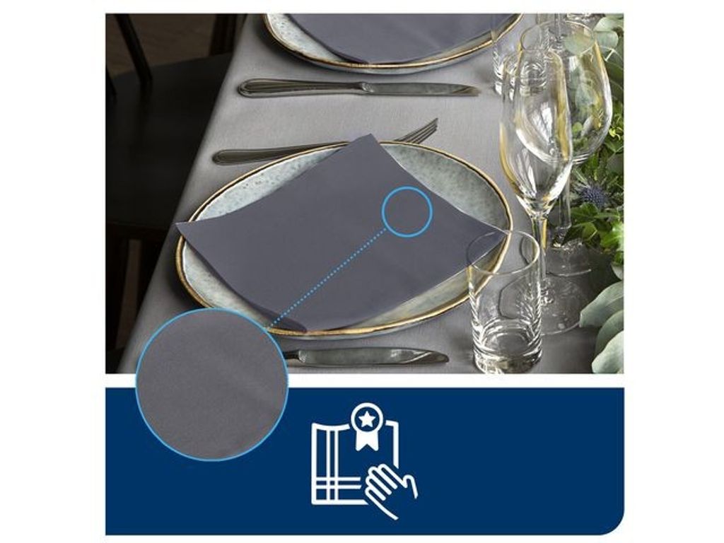 Håll middagsgästerna nöjda – slitstarka, nonwoven LinStyle servett varar under hela måltiden. Gör ett gott första intryck med högkvalitativa Tork LinStyle Middagsservett. Dessa servetter ger ett lyft till middagsupplevelsen eftersom de både ser ut och känns som premiumlinne. Dessutom är de mjukare och tjockare än vanliga pappersservetter, så gästerna kommer att märka skillnad. Spill torkas enkelt upp på ett ögonblick med den extra absorberande kvaliteten som sparar personalen både tid och ansträngning. - Hållbar nonwoven-kvalitet - Mjukare och tjockare än traditionella pappersservetter - Premiumkänsla av linne utan tvättkostnaderna - Överlägsen absorptionsförmåga vid upptorkning av spill - 1-lagers, grå - Premium-kvalitet - Vikt storlek: D 19.5cm, B 19.5cm - Ovikt storlek: D 39cm, B 39cm - FSC-märkt