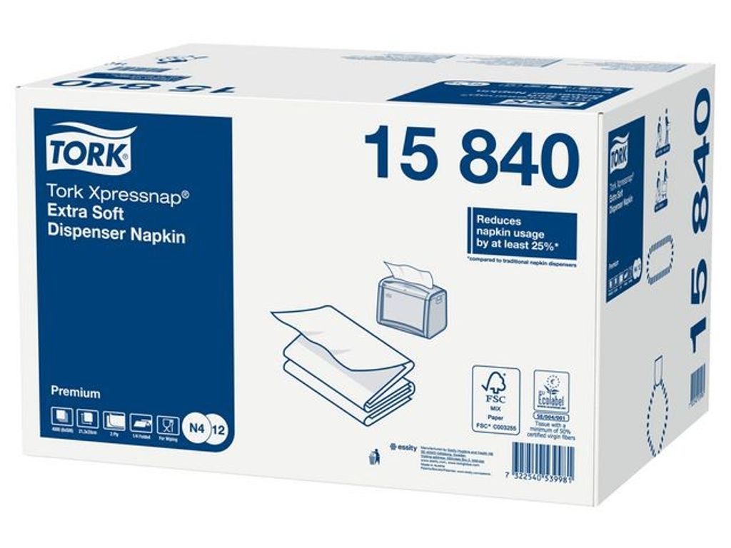 Xpressnap ultramjuka dispenserservetter är en högkvalitativ produkt som passar på alla typer av bord. Hektiska miljöer med självservice behöver servetter av hög kvalitet som inte skapar onödigt avfall eller kostnader. Tork Xpressnap Extra Mjuk Vit Dispenserservett har högklassig mjukhet och tjocklek som gör ett gott intryck på gästerna. Förbättrad renlighet med hjälp av utmatningen av ett ark i taget som garanterar att användare bara rör det de tar. Servetten passar till exempel på kaféer, i snabbmatsrestauranger och i närbutiker. Används smidigt tillsammans med hela serien av Tork Xpressnap dispensrar. - 2-lagers - Premium-kvalitet, vit - Vikt storlek: D 10.7cm, B 16.5cm - Ovikt storlek: D 21.3cm, B 33cm - 5 buntar per förpackning. med 100 servetter vardera - FSC-märkt - EU Ecolabel: licensnummer SE/004/001