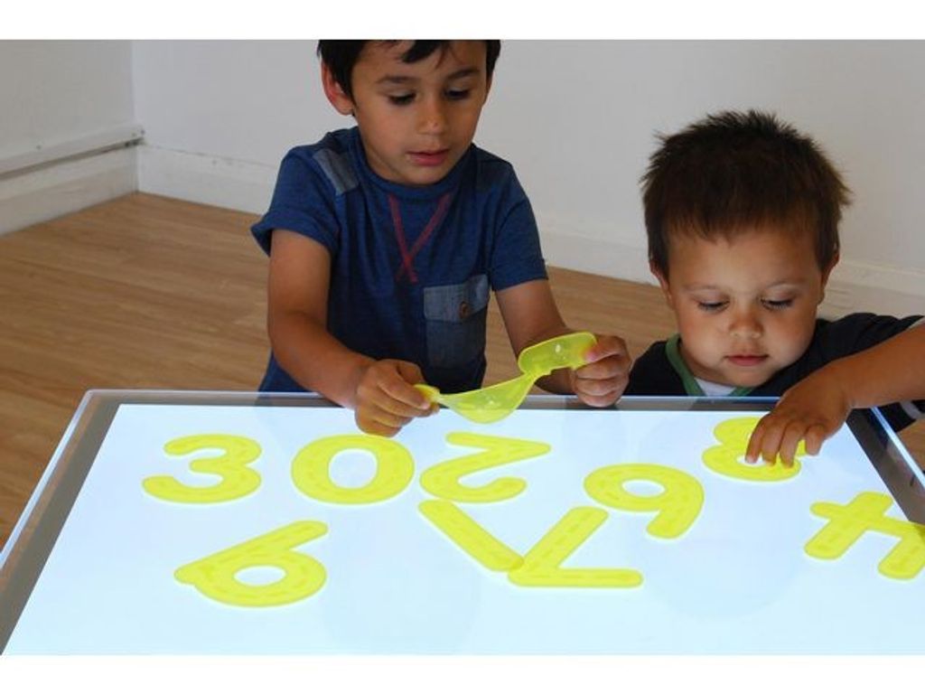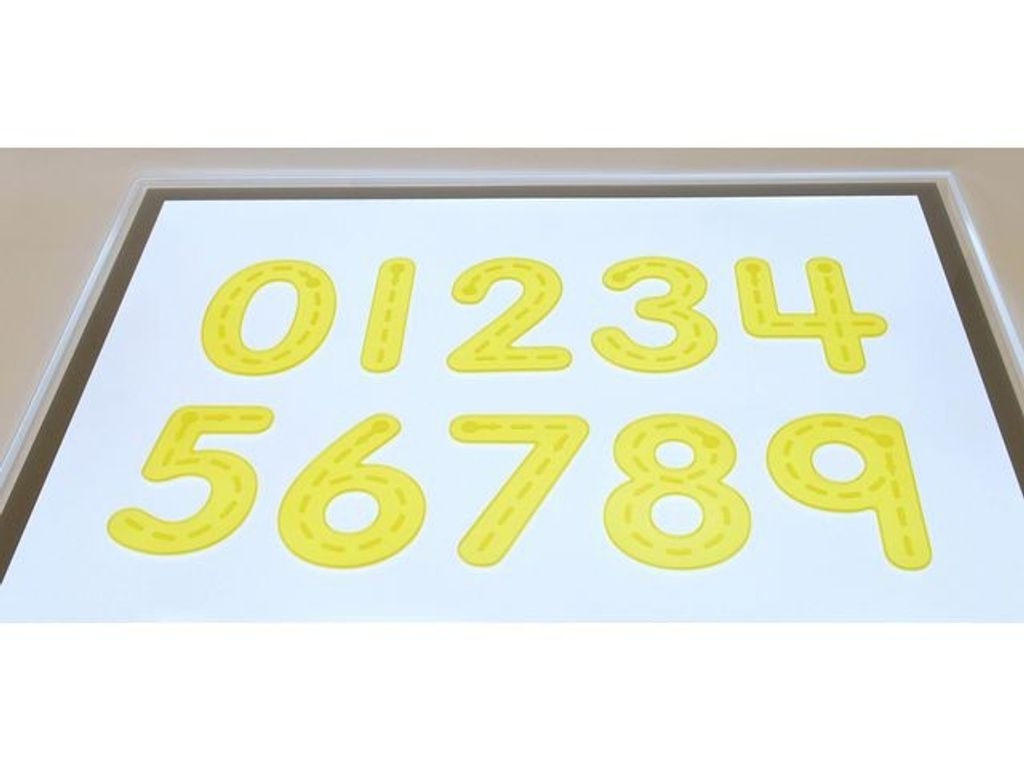 Siffror i silikon perfekta att använda på ljusbord med även på golvet Silikon är ett starkt, mjukt och flexibelt material idealiskt för barn från 1 år. Transparenta och därmed perfekta att använda på ljusbord med även på golvet, eller i vattnet. De tvättas enkelt av i tvålvatten. - Rekommenderad ålder: +1år - Mått: Höjd 12 cm. -
