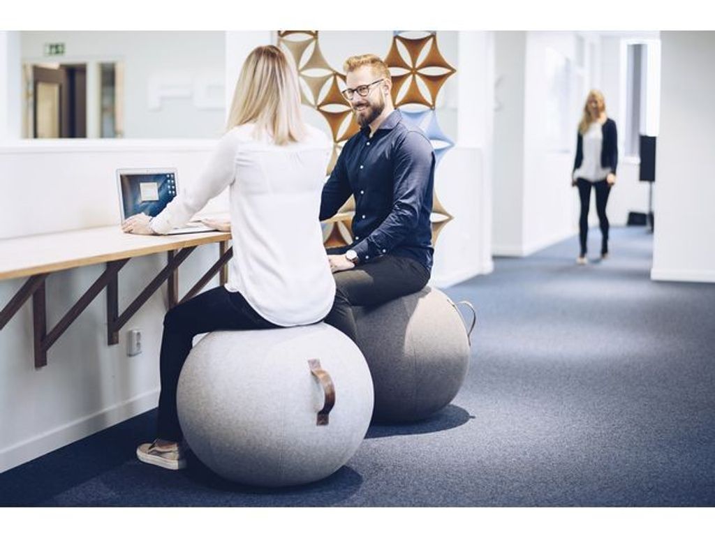 JobOut sittboll (ljusgrå) ger ett aktivt sittande under arbetsdagen. Den kraftiga klädseln ger en ökad komfort och är mjuk och skön att sitta på. Tyngden i botten av fodralet gör att sittbollen håller sig på plats när du reser dig eller vid förvaring när den inte används. Handpump medföljer. Fodral i ljusgrått filttyg med handtag i brunt PU-läder. Finns även i mörkgrått filttyg och svart PU-läder. Material: Tygklädsel, metallsand, balansboll i PVC. Storlek: Ø 65 cm. - PVC (Ftalatfritt) - Max belastning: 115kg
