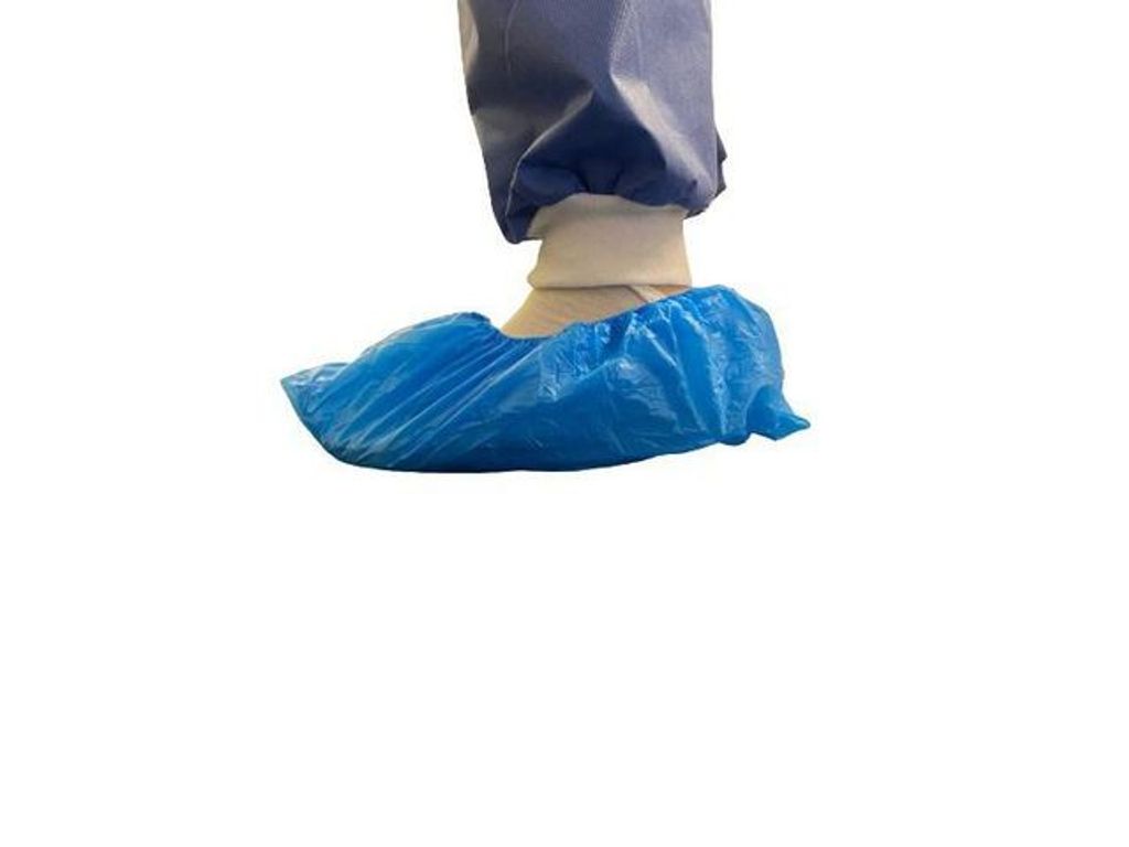 Skoöverdag i lite kraftigare plast för engångsanvändning. Skoskydden är utmärkta för användning som skydd mot infektioner, bakterier, fukt och smuts. Skoskydden är gjorda av 100% CPE, vilket är en form av behandlad polyeten. - Material: 100% Cast polyeten (CPE) - Storlek: Medium - Mått: 41 x 15 cm - Tjocklek: 50 my - Vikt: 2,8g/st