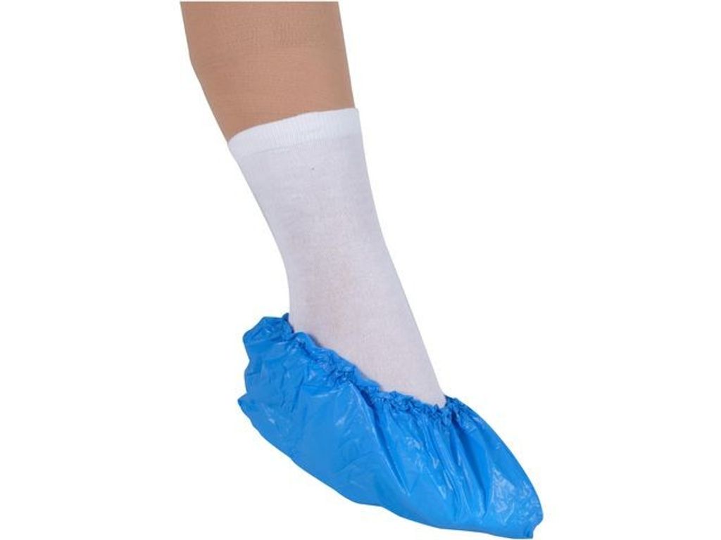 Skoskydd för engångsbruk som går snabbt och lätt att ta av och på. Används som skydd emot infektioner, bakterier, fukt och smuts. - Material: LDPE - Mått: 15 x 41 cm - Tjocklek: 75 my - Destruktion: Kan brännas eller kastas bland hushållssoporna