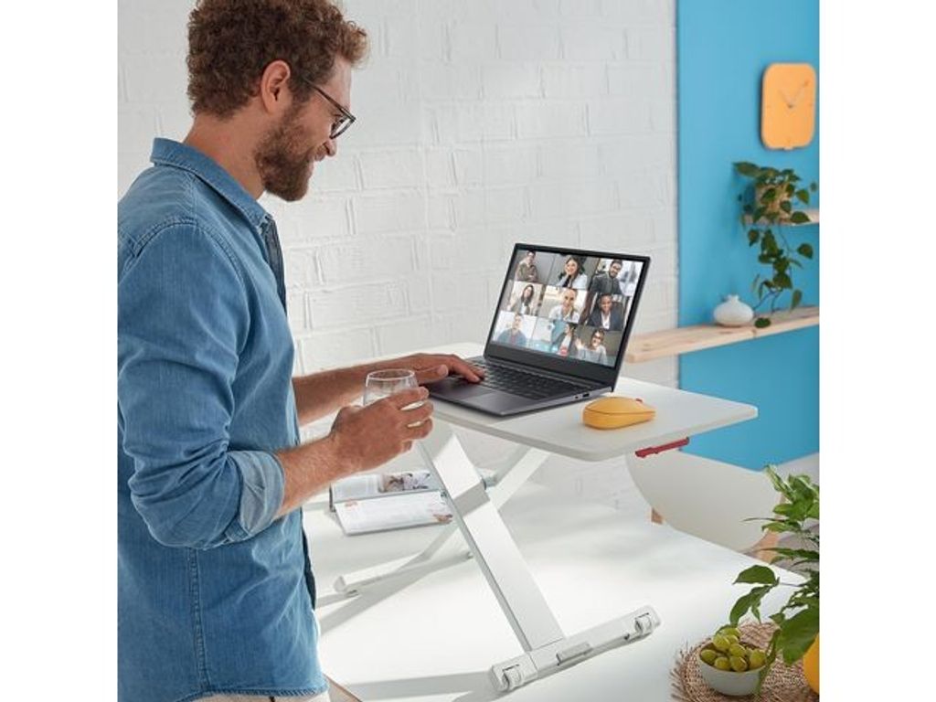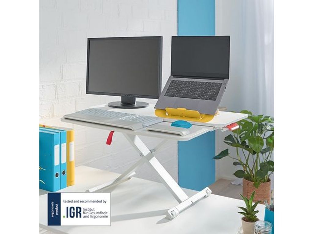 Elegant och ergonomiskt utformad skrivbordsställ med utdragbar skiva för tangentbord och mus. Växla mellan sittande och stående för att främja muskelrörelser för allmän hälsa och välbefinnande. Pneumatisk assisterad höjdjustering för att enkelt och enkelt växla mellan sittande och ståposition. Rör sig rakt upp och ner inom sitt område för att spara utrymme. Rymmer en bildskärm och en laptop på huvudytan samt ett tangentbord, en mus och handledsstöd på utdragbara skivan. Leitz Ergo Cozy-sortiment kombinerar stil med premiumkvalitet för att skapa en hälsosam och aktiv arbetsmiljö. - 5 års garanti - Ultra-kompakt 800 x 420 mm så den tar inte upp mycket plats på ditt skrivbord - Slimmad design gör det enkelt att bära och förvara när den inte används - Minsta höjd 72 mm, maximal höjd 380 mm - Maxvikt 16 kg på huvudytan och upp till 8 kg på utdragbara skivan - Plastfri förpackning och produkt kommer helt monterad