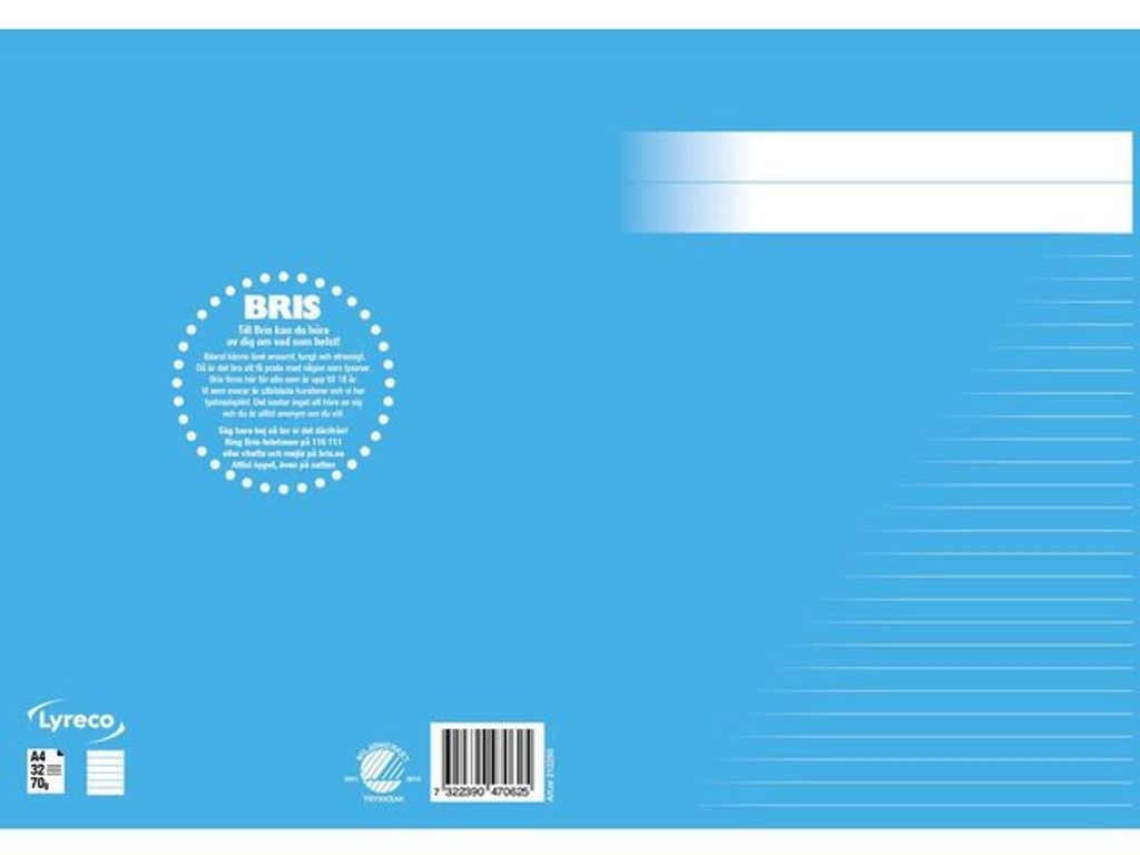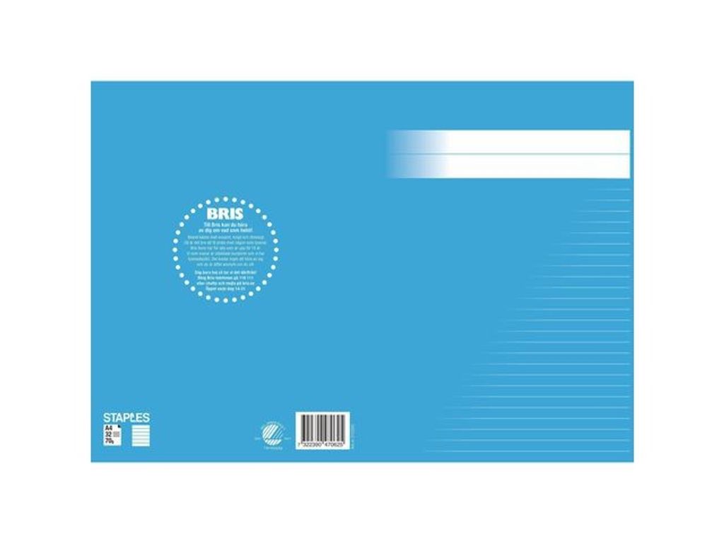 En stilren serie skriv- och räknehäften för alla åldrar. Linjerade, rutade och olinjerade varianter i olika storlekar och de härliga färger hjälper dig att skilja dem åt. Ett svanenmärkt, linjerat, skrivhäfte med 8,5mm linjeavstånd. I format A4. Tillsammans stödjer vi BRIS genom att 5 öre per sålt häfte ur denna serie går direkt till BRIS, Barnens Rätt i Samhället. - Format: A4 - Linjering: Linjerad - Linjeavstånd: 8,5mm - Gramvikt: 70g - Antal blad: 32 - Färg: Mellanblå - Svanen: Licensnummer 20410013 - BRIS: tillsammans stödjer vi BRIS Svanen: Licensnummer 20410013
