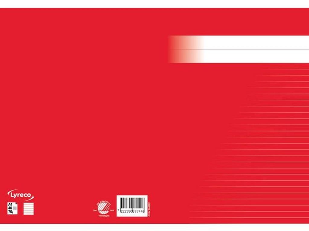 En stilren serie skriv- och räknehäften för alla åldrar. Linjerade, rutade och olinjerade varianter i olika storlekar och de härliga färger hjälper dig att skilja dem åt. Ett svanenmärkt, linjerat, skrivhäfte med 8,5mm linjeavstånd. I format A4 Format: A4 Linjering: Linjerat Linjeavstånd: 8,5mm Gramvikt: 70g Antal blad: 40 Färg: Röd Svanen: Licensnummer 20410013 - Svanen: Licensnummer 20410013