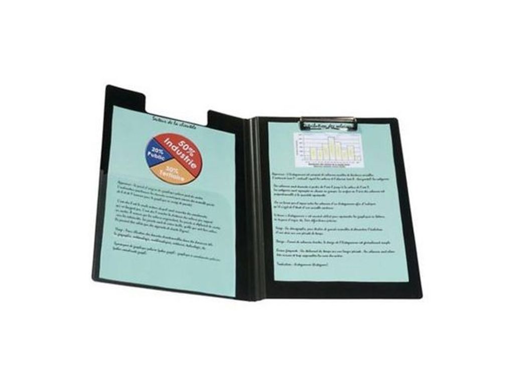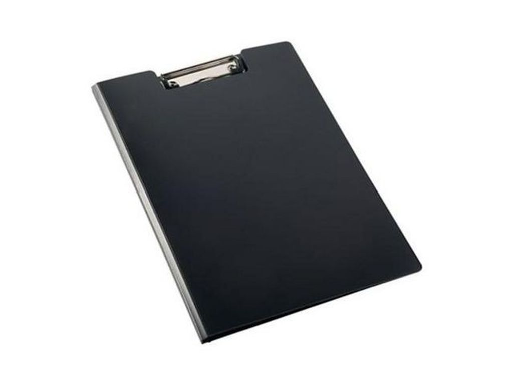 Skrivplatta med omslag tillverkad av kartong och skyddande PP-plast i A4 storlek. Skrivplatta med en stark metallklämma som klarar upp till 100 ark papper 80g. Perfekt om man ska arbeta utomhus ock behöver göra noteringar, som vid event eller tävling. Klämman håller pappret på plats och dessutom har plattanen ficka på insidan av omslaget för extra förvaring. - Stark klämma - Färg: Svart - Passar papper i A4-format - Mått: 210X320mm - Ficka på insidan av omslaget