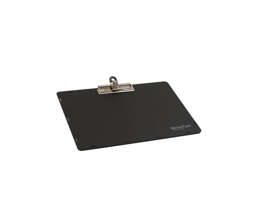 Skrivplatta i PP-plast, liggande A4. Rejäl klämma och pennhållare. KEBAnote Writepad liggande A4. Skrivplatta tillverkad i solid PP med kraftig klämma och pennhållare. Tål att torkas av med vatten och rengöringsmedel, tappar aldrig formen. Säljs styckvis. - Klämma med hål för upphängning - Material: PP-plast, metallklämma - Pennhållare i klämman med låsning - Avtorkningsbar med vatten och rengöringsmedel - Mått: 313 x 219 x 3mm - Kan hålla 40-50 ark