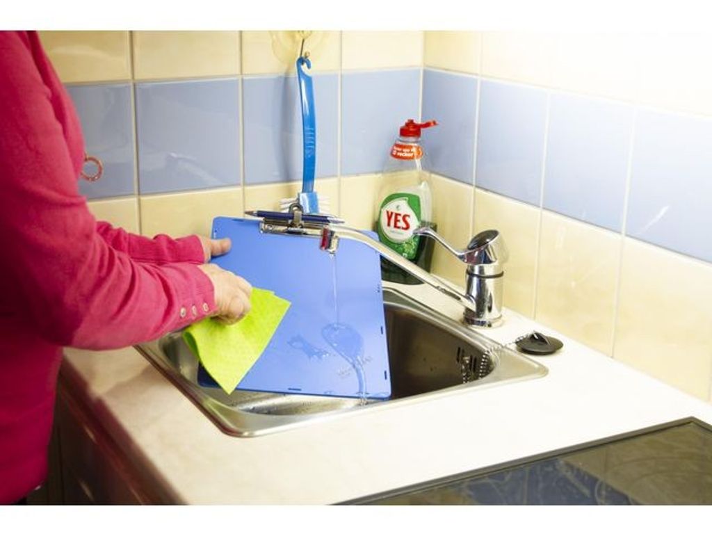 Skrivplatta i PP-plast, stående A4. Rejäl klämma och pennhållare. Tål tuffa tag, värme, kyla och lösningsmedel. Kan torkas av. 5 års garanti. Passar bra på konferens, säljmöten, för föreningar, lager, skola och sjukhus. - Klämma med hål för upphängning - Material: PP-plast, metallklämma - Pennhållare i klämman med låsning - Avtorkningsbar med vatten och rengöringsmedel - Mått: 313 x 219 x 3mm - Kan hålla 40-50 ark