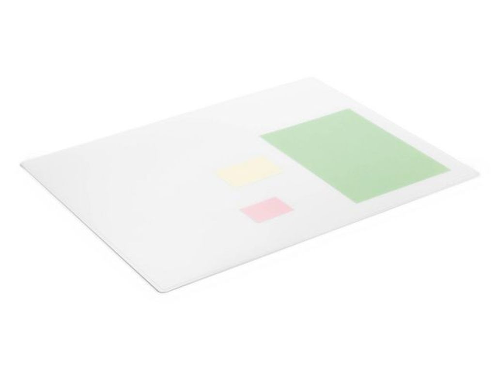 Halvt transparent skrivbordsunderlägg med rundade hörnor och dekorkant, skyddar bordet mot slitage och ger en mjuk och skön skrivkänsla. Anteckningar och noteringar som förvaras under skrivunderlägget skyddas men är ändå synliga under detta vit-transparenta skrivunderlägg med antireflekterande yta. Tack vare en tillverkningsmetod som gör att undersidans yta får bra grepp ligger underlägget stadigt på bordet utan att glida. Kan torkas av med en fuktig trasa på båda sidorna. - Tillverkad av polyproylen - 100% återvinningsbar - Mått: 65 x 50 cm (B x H)