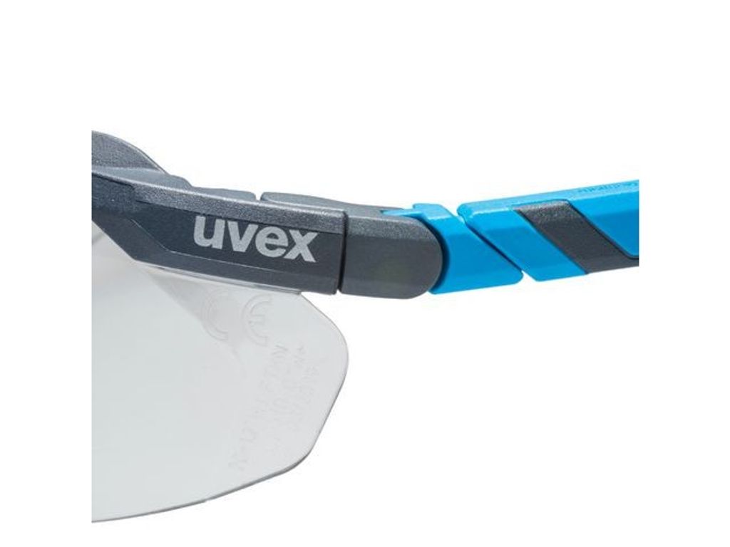 Skyddsglasögon UVEX I-5 9183.266 ger maximal säkerhet tack vare innovativ och modern design i form av x-tended eyeshield samt sideshield. UVEX I-5 9183.266 är ett pålitligt skydd i alla situationer. Genomtänkta funktioner ger förstklassig komfort även vid långvarig användning. Den speciellt designade x-tended eyeshield ger extra skydd mot flygande partiklar, damm och smuts. Medan x-tended sideshield för ökat sidoskydd. Uvex supravision excellence linsbeläggning ger permanent anti-imskydd på insidan och är extremt motståndskraftig mot kemikalier och repor på utsidan. Passar för användning inom fordonsindustrin, logistik, livsmedelsindustri mm. - CE-certifierad - Godkänd enligt: EN 166, EN 170 - Färg lins: Klar - Material lins: Polykarbonat - Egenskaper lins: Anti-imskydd, reptålig - Färg båge: Grå, blå - Vikt: 56g