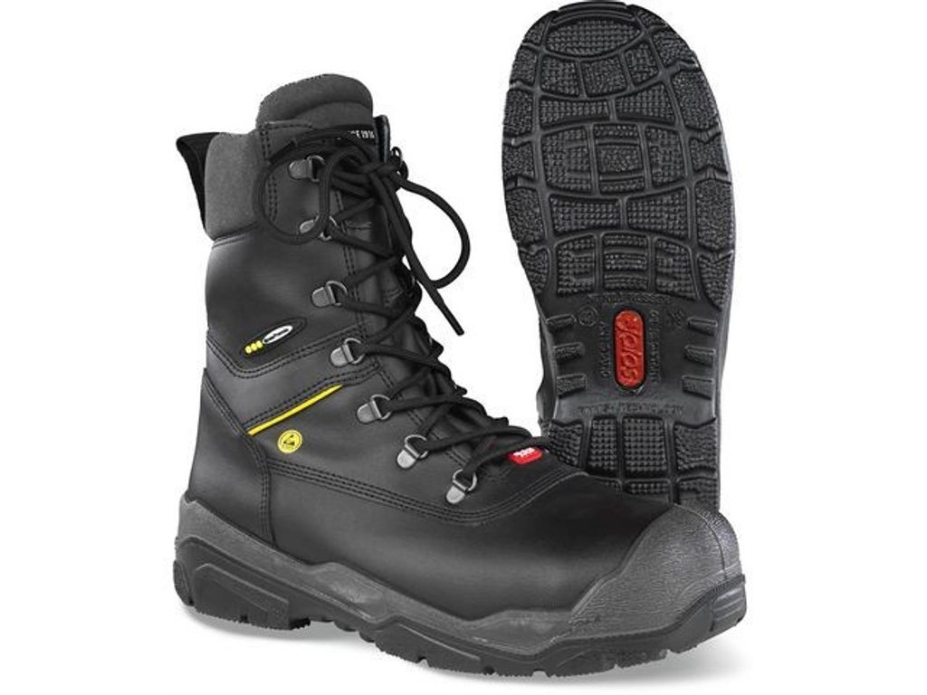 En förstklassig skyddskänga med antistatiska egenskaper och högsta skyddsnivå (S3) för grövre arbeten. Den slitstarka ovandelen i PU-belagt läder och tekniskt fleecefoder skyddar och värmer fötterna under arbetet. Den olje- och värmebeständiga yttersulan i nitril ger ett extremt bra grepp i krävande miljöer. Skon har även JALAS® aluminiumtåhätta, spiktrampskydd i stål och dubbla stötdämpande zoner i PORON® XRD®. - Storlek 45 - Godkända enlig: EN ISO 20345:2011 - Skyddsklass: S3, SRC, CI, HRO, HI